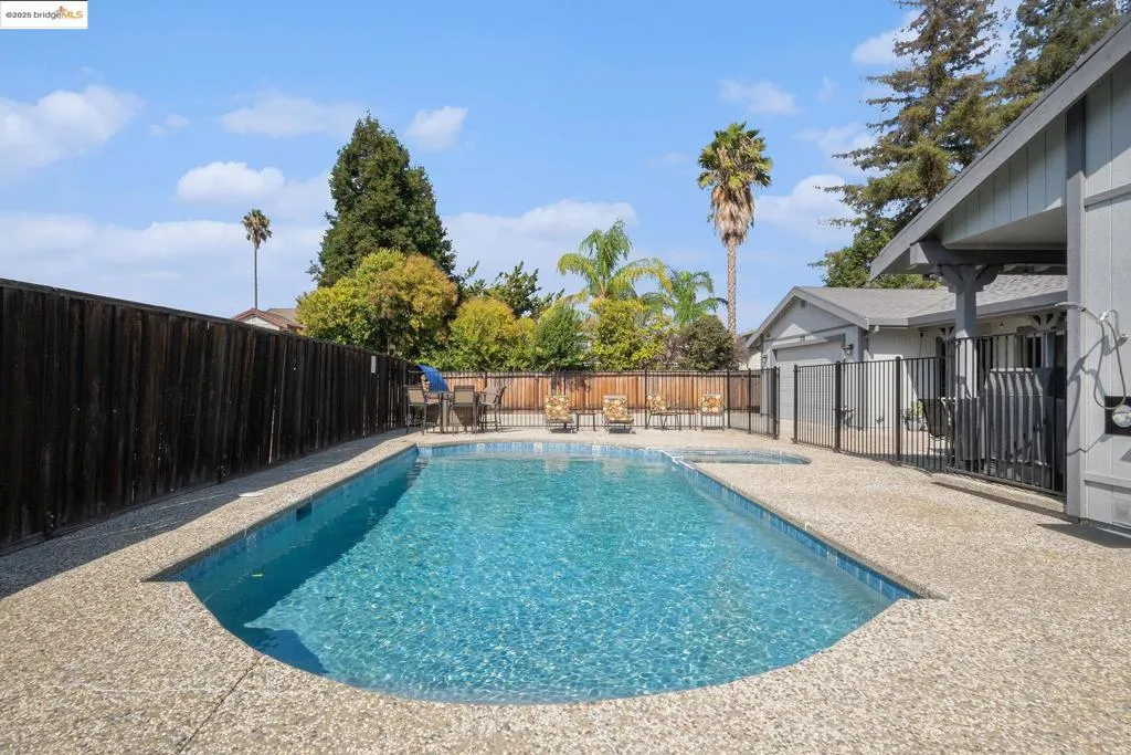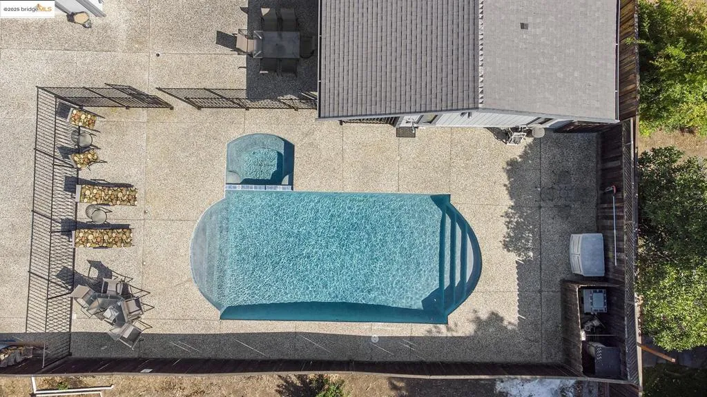 Tucked away at the end of a private lane shared by just six homes in Concord’s Mt. Diablo School District, this custom single-story home offers 2,705 sq. ft. on an 11,250 sq. ft. lot. A rare front-yard recently refinished PebbleTec pool and spa greet you with a stunning water element. Inside, vaulted tongue-and-groove wooden ceilings, exposed beams, and a wood-burning fireplace insert plumbed for gas complement the open-concept kitchen, great room, and living room. The chef’s kitchen features a prep island, stainless steel KitchenAid appliances, 60″ hood, 36″ cooktop with 15″ Thermador grill, and rare blender hookup. Primary suite offers jetted soaking tub, walk-in shower, and dual vanities. Third bedroom with full bathroom/junior ensuite has private entrance. Updates include fresh paint, black-framed windows, tuned-up roof, Carrier 5-ton HVAC, 50-gallon water heater, new wood fencing, safety pool gate, and 10×65 driveway access.