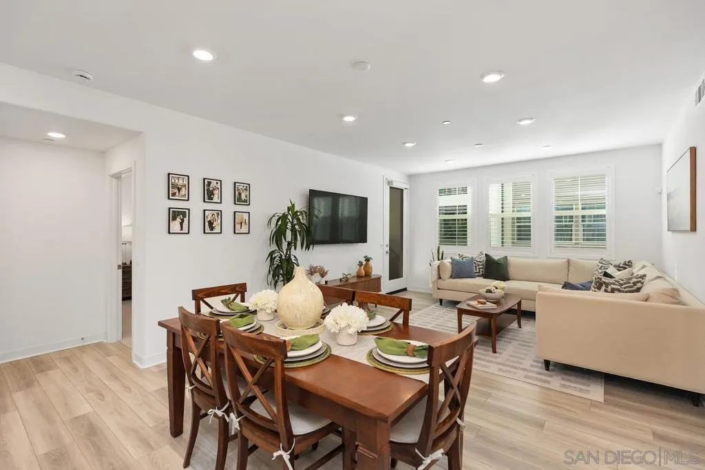 Seller offering credit for rate buy-down! Welcome to your dream home in Rancho Mission Viejo’s coveted Rienda Community. Amazing deal for right buyer, assumable mortage! This stunning second-floor residence blends comfort and sophistication with a rare single-level floor plan offering 2 bedrooms, 2 full baths, and a versatile den, perfect as a home office, sitting area, or hobby space. The open-concept design connects the kitchen, dining, and living areas into one inviting Great Room with access to a private balcony for outdoor relaxation. The modern kitchen features a spacious island with stainless basin sink, quartz countertops, soft-close cabinetry, and stainless steel appliances including a WiFi-enabled oven with gas range. The stylish primary suite is privately situated opposite the secondary bedroom and boasts a walk-in shower, dual vanities, and walk-in closet. Solar owned. Additional upgrades include beautiful flooring, window shutters, tankless water heater, and fully paid solar. Convenience abounds with direct access one-car garage plus in-unit full-size washer and dryer. Enjoy resort-style amenities: multiple pools, the 20,000 sq. ft. Lagoon, Boulder Pond and playground, parks, trails, Ranch Camp, fitness center, firepits, lounges, dog park, pickleball, tennis, and the future Rienda K-8 school. Experience the best of California living in Rancho Mission Viejo! Welcome to Portico in Rancho Mission Viejo’s highly sought-after Rienda community—where modern living meets resort-style amenities and the California lifestyle shines. Living here means more than just owning a home; it’s about experiencing a vibrant community designed for connection, wellness, and recreation. Residents enjoy unmatched amenities including multiple swimming pools, the spectacular 20,000 sq. ft. Lagoon Pool, Boulder Pond and playground, scenic walking and biking trails, Ranch Camp fitness and gathering spaces, firepits and lounges, dog park, pickleball and tennis courts, and the upcoming Rienda K-8 school—all just steps from your door. This beautifully designed second-floor Portico residence offers rare single-level living with 2 bedrooms, 2 full baths, and a flexible den that can serve as a home office, cozy retreat, or creative space. The open-concept Great Room seamlessly connects kitchen, dining, and living areas, extending to a private balcony perfect for relaxing outdoors. The sleek kitchen features a large island with quartz countertops, stainless steel appliances, soft-close cabinetry, and WiFi-enabled gas range. The spacious primary suite, thoughtfully separated for privacy, boasts a walk-in shower, dual sinks, and walk-in closet. Modern comforts include beautiful flooring, shutters, tankless water heater, paid solar, direct-access garage, and full-size washer/dryer. Portico at Rienda offers more than a home—it offers a lifestyle. Come experience the best of Rancho Mission Viejo living!