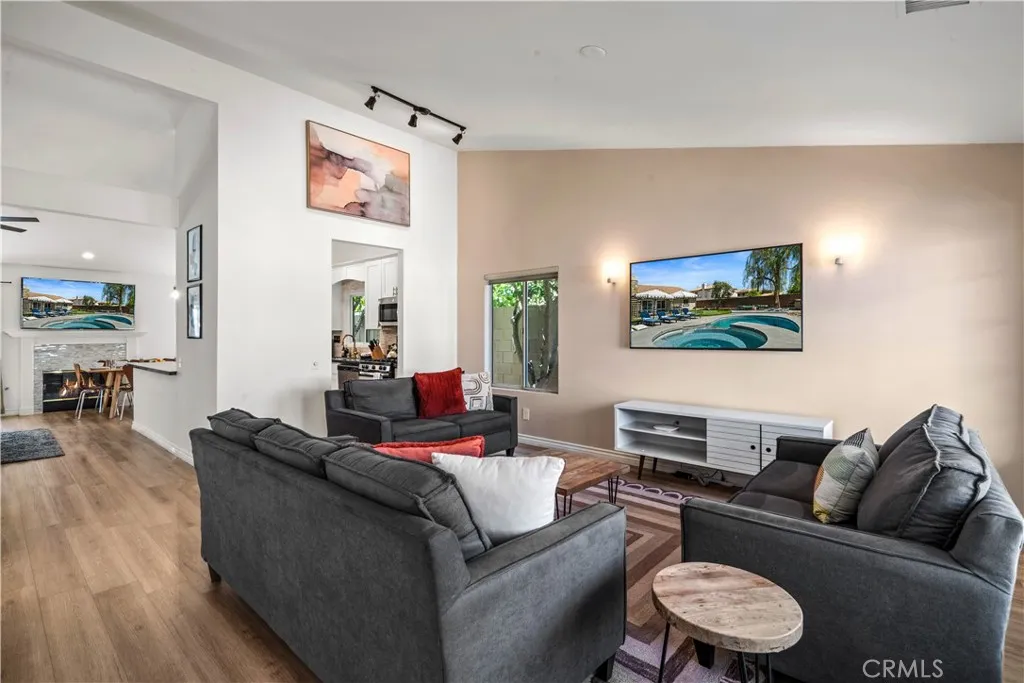 Discover this charming slice of paradise in North La Quinta. This beautiful, Spanish style home is full of character, thoughtfully updated finishes and comes fully furnished! As you enter through the front gate, and the manicured front yard. Feel the tranquil setting, the attention to details and design that set’s this home apart. This home features 4 spacious bedrooms, 2 bathrooms with intricate tiling and beautiful updates throughout. The primary bath features a built in large soaking tub, custom vanities and separate walk in shower. A gorgeous large kitchen with granite slab countertops, stainless steel appliances and a perfect layout to host friends and family. With a well suited floor plan and vinyl plank wood flooring throughout to create a comfortable and inviting atmosphere. Equipped with a 2 car garage and an amazing, fully permitted home theater with a projector and reclining seats. Entering the oversized rear yard, features a gorgeous salt water pool and spa, a built-in BBQ with bar seating, putting green and a custom fire pit! (Notice, this is one of the few homes in LQ highlands with a rear block wall!) both manicured front and backyard landscape– perfect for outdoor entertaining. Centrally located to world renowned festivals like Coachella, Stagecoach, Indian Wells tennis tournament and the new Acrisure Arena. Not to mention, attractions like Disney Cotino, Palm Springs and many more that drive year round demand, don’t miss this opportunity in La Quinta.”