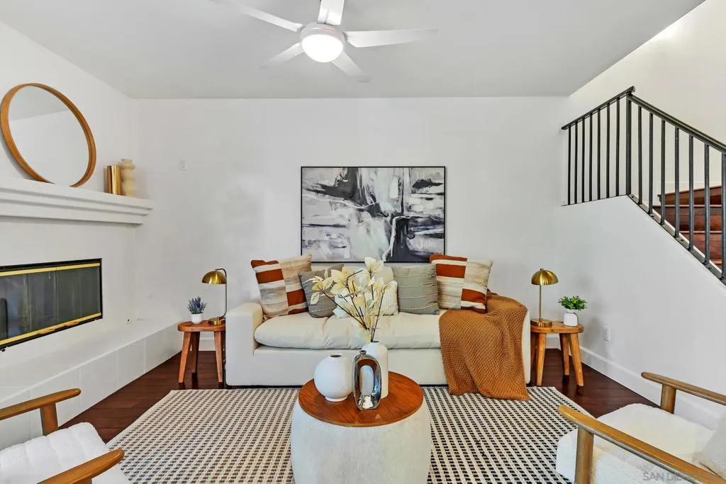 Crisp, modern, and move-in ready—this updated townhome in gated Villa Aspara backs to open greenspace and lives large with natural light and two private balconies. Inside, you’ll find real wood flooring, solar for energy savings, and a modern kitchen with quartz counters, stainless appliances, and bar seating—perfect for everyday living or easy entertaining. The flexible layout offers a spacious living area, dining zone, and a powder room on the main level, with bedrooms tucked upstairs for privacy. The attached two-car garage has a rare perk in this community: convenient loading/unloading parking directly in front of the garage. Outdoors, enjoy the peaceful backdrop of the greenbelt plus community amenities and the security of a gated neighborhood. All of this in a prime San Marcos location—minutes to shopping, dining, Cal State San Marcos & Palomar College, and quick access to Hwy-78 & I-15. Villa Aspara is known for its well-kept grounds, pool/spa area, and lock-and-leave convenience.