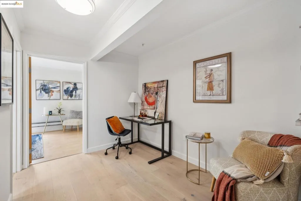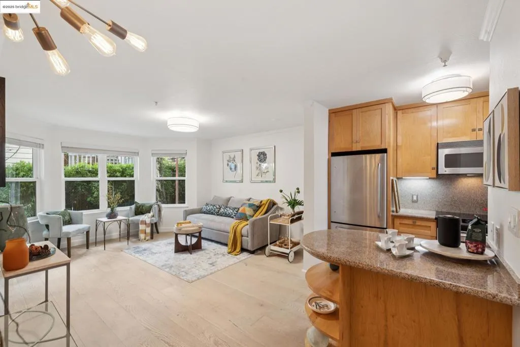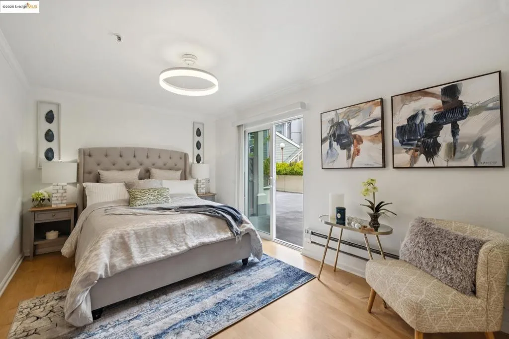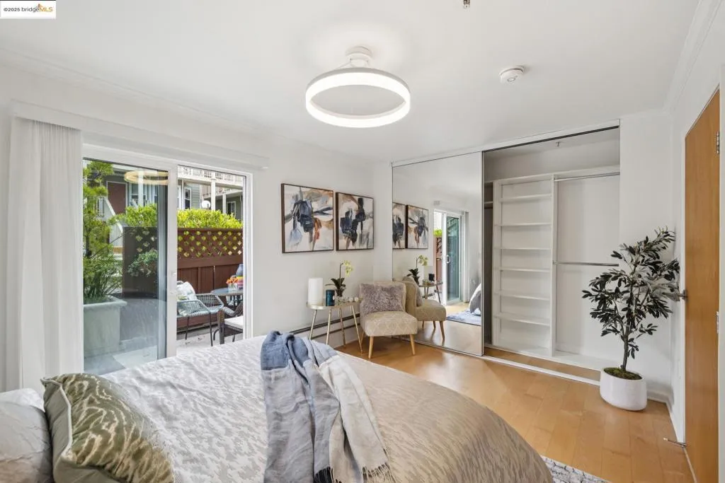 Rarely available modern condo with a versatile den/flex space, located directly across from San Francisco’s iconic Painted Ladies at Alamo Square Park on the border of Hayes Valley. This home combines the charm of a historic neighborhood with the convenience of a newer building in a secure, gated community. The unit offers no steps to entry, wide-plank hardwood floors, an upgraded kitchen with granite counters, in-unit washer/dryer, and a bright living/dining area. The flexible den works perfectly as a home office, lounge, or guest stay. The generously sized bedroom includes a floor-to-ceiling closet and opens directly to a private patio. One dedicated garage space is included—ideally located next to the elevator that takes you straight to the condo level. Community amenities feature a lush courtyard with a fountain and BBQ area, secured mailboxes, and a parcel room. With a Walk Score of 96 (Walker’s Paradise), plus Excellent Transit and Very Bikeable ratings, enjoy unmatched access to Hayes Valley dining, shops, cafes, and public transportation. Multiple Muni lines within one block provide a 20-minute commute to the Financial District, with nearby BART stations offering citywide and Bay Area connections. Exceptional condo with private patio and parking in the heart of SF!