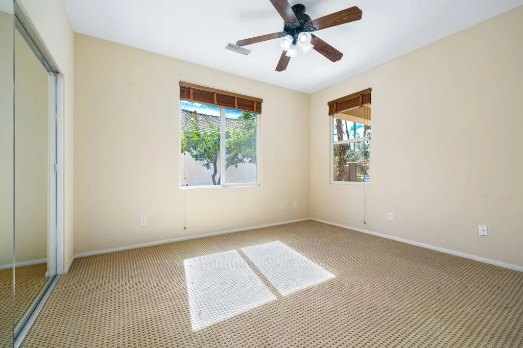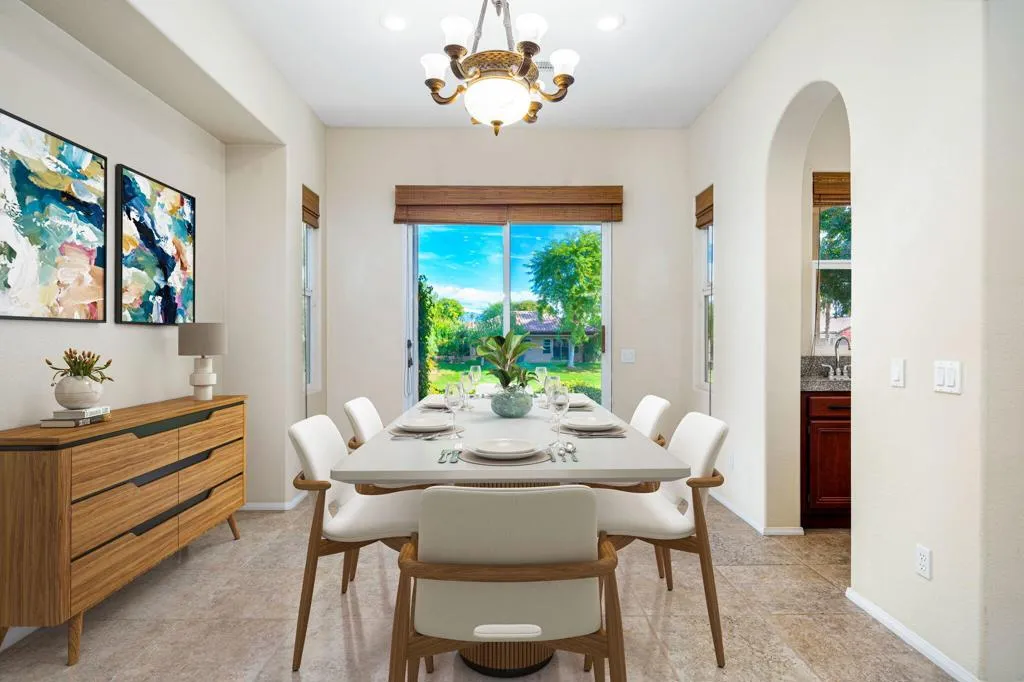 Lakefront with Spectacular Views, Great Curb Appeal, Popular Open Floor Plan and located near Mission Hills Country Club Sports Clubhouse with Tennis/Pickleball Membership Included. Enter through Gated Courtyard with outdoor living and mountain views. Entry Hall leads to Open Great Room with fireplace Kitchen and Dining area all with great views of the lake and fountain. Social Kitchen features granite counters and island with counter seating. Dining area and Entertainer’s Bar overlook the lake views. Primary Suite has Retreat area overlooking the lake and Primary Bath featuring dual vanities with marble countertops, shower and a soaking tub. Extra large Primary Closet has custom built-ins. Guest Suite is like a casita with a slider to the courtyard terrace, an ensuite bath and walk-in closet. Second Guest Bedroom and bath nearby give room for friends and family or an office. Outside are expansive lakefront terraces for dining and living and courtyard with mountain views. Mission Hills Country Club Sports Membership included in HOA (tennis, pickle ball, croquet, gym, social). Great value at this price – come home to your lakeside desert retreat!