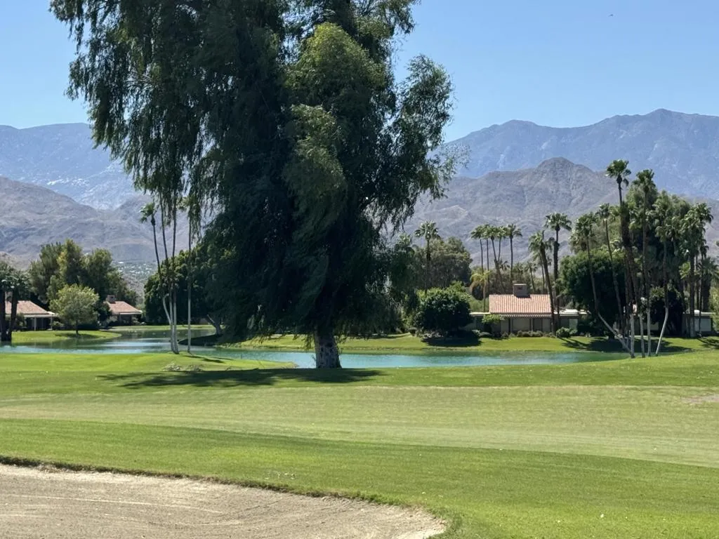 Breathtaking Views! REALLY! In the top views in all Mission Hills. Set against one of the most breathtaking backdrops in the desert, this Mission Hills Country Club residence captures panoramic vistas of the San Jacinto, San Gorgonio, and Santa Rosa Mountains along with triple fairway views of the Tournament Course’s #2, #5, and #6 holes. Its southwest orientation fills the home with natural light throughout the day and frames spectacular sunsets each evening, all from a uniquely private location.Designed for desert living at its finest, the home offers 3 bedrooms and 3 bathrooms, each with direct patio access to seamlessly extend living spaces outdoors. A gated courtyard and double-door entry lead into a spacious living room featuring a fireplace and expansive walls of glass showcasing the surrounding scenery.The kitchen and bathrooms have been stylishly remodeled with modern finishes, while recent updates — including two new Carrier A/C systems, a new water heater, and fresh paint — provide comfort, efficiency, and peace of mind.Whether enjoying quiet mornings overlooking the fairways or entertaining guests against a dramatic mountain backdrop, this home adapts beautifully to a variety of lifestyles. It is equally well-suited as a full-time residence, seasonal retreat, or investment property.Mission Hills Country Club remains one of Rancho Mirage’s most celebrated addresses, offering championship golf, a full-service clubhouse, pickleball, tennis, fitness facilities, swimming pools, spas, and a vibrant year-round social calendar. This property is situated on leased land, with the lease secured through the year 2121.A rare opportunity to own one of the best-positioned golf course properties in Mission Hills, combining stunning views, thoughtful updates, privacy, and access to the finest country club lifestyle in the desert.