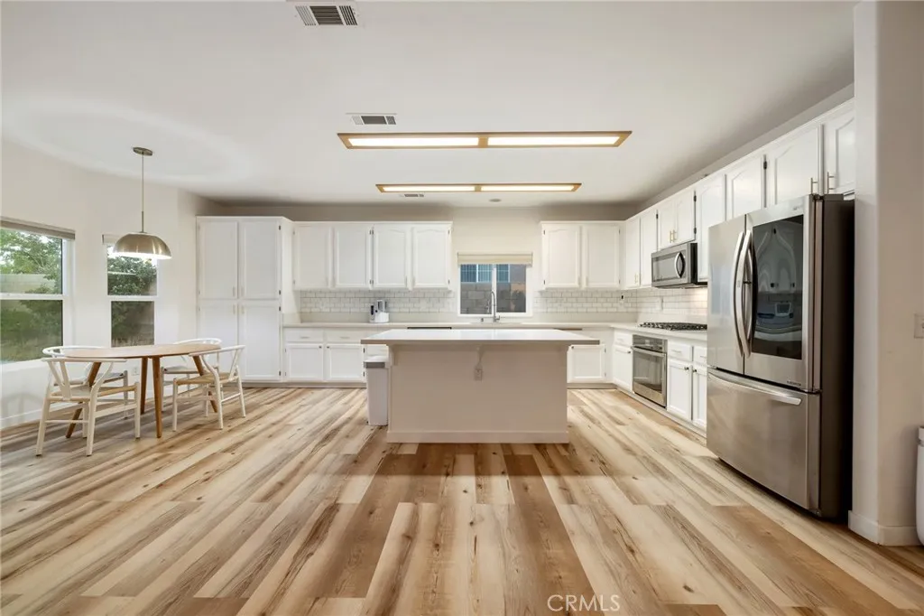 Welcome to this charming 4-bedroom, 3-bathroom, 3,130 sqft home in the desirable Rancho Vista community of West Palmdale. Just minutes from the Antelope Valley Mall, shopping centers, and freeway access, this home offers both convenience and comfort. Enjoy soaring ceilings and newer laminate flooring throughout the main level. The open-concept kitchen features white quartz countertops and a large island, flowing seamlessly into the cozy family room with a modern fireplace, perfect for gatherings and everyday living. Upstairs, the oversized primary suite boasts a private balcony, spacious walk-in closet, and a spa-like bathroom with a roman tub, separate shower, and dual sinks. Step outside to a spacious backyard with a covered patio and a modern shed with electricity, ideal for a home office or creative space. The paid-off solar system is a standout feature that will help you save year-round.Additional perks include two A/C units, Tesla charger, epoxy garage flooring, newer windows, water softener and filtration system, and newer exterior paint. This home is ready for you to move in and start making memories! Schedule your private tour today!
