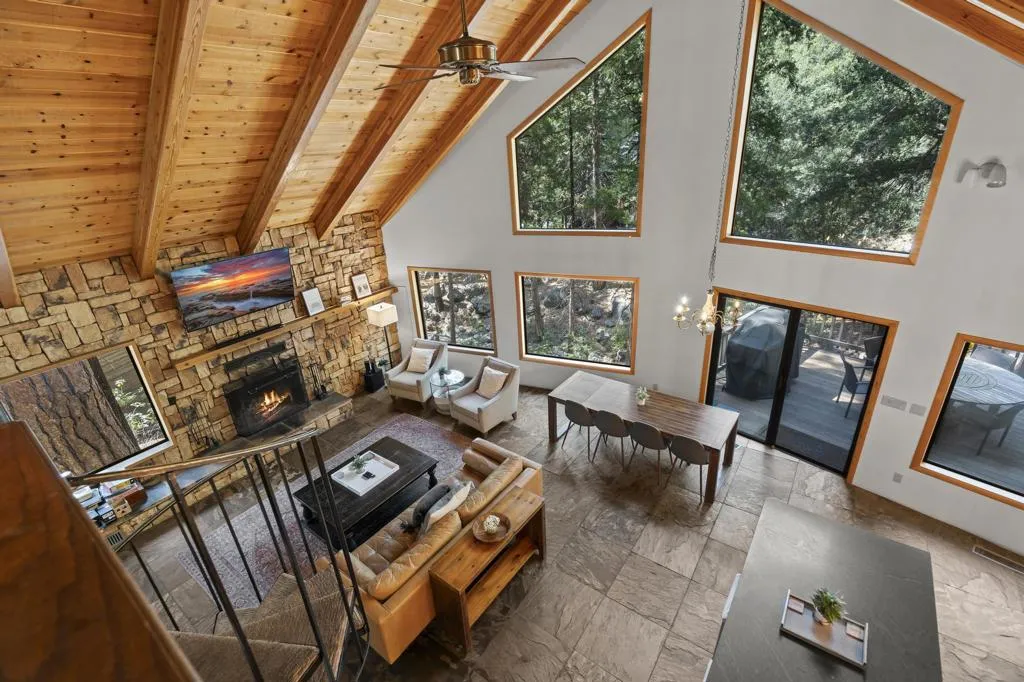 Turnkey Mountain Chalet on the Creek. Discover mountain living at its best in this fully furnished 3BR/3BA retreat nestled along the Creek. Step inside to an open floor plan where slate stone flooring flows through the great room, anchored by a cozy fireplace and a dramatic wall of windows that frame the forest and creek beyond. Natural light fills the space, creating a warm and inviting setting for relaxing or entertaining. Step onto the back deck for peek a boo views of Suicide Rock or enjoy Lily Rock from the front. Each bedroom offers comfort and privacy, while the thoughtful layout makes everyday living easy. With furnishings included, this home is truly move in ready, just bring your bags. Located minutes from Humber Park and Idyllwild’s scenic hiking trails, it’s ideal as a full time residence or a turnkey weekend escape. Don’t wait to schedule your private showing and experience the magic of Idyllwild today!