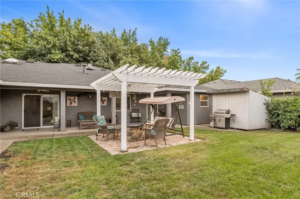 A sizable indoor laundry room is off of the kitchen. The laundry room features a utility sink, and extra storage cabinets with countertops for a convenient folding area. Through the laundry you enter the spacious, fully insulated 3 car garage. Next to the garage is an additional secured parking area for your RV, boat or bikes too! The back yard has a cozy pergola patio sitting area, and the back yard is fully fenced.