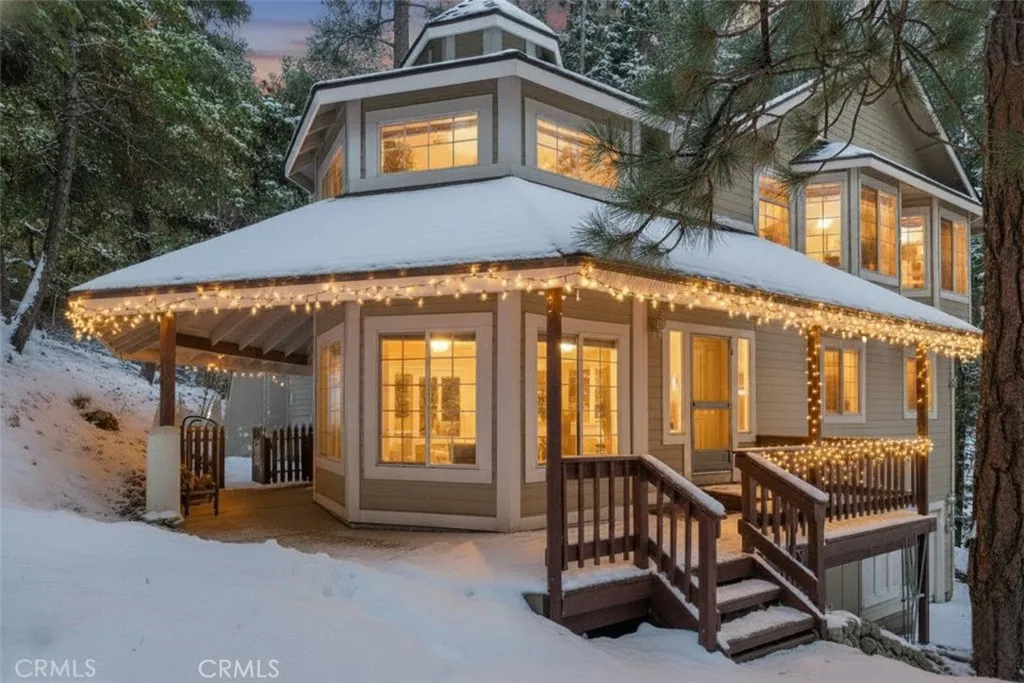 Attention all 90s Grandmacore lovers! Welcome to this Lake Arrowhead dollhouse near the golf course, cradled among the trees, where the charm and warmth are reminiscent of a coastal bed-and-breakfast—playful, whimsical, and full of timeless character. The home sits on an upslope lot with gorgeous curb appeal, featuring a covered porch, mature trees, and a gently sloped driveway leading to a deep 2-car garage. Inside, 4 spacious bedrooms and 3 bathrooms invite comfort and relaxation. In addition, theres a bonus room on the main floor that can serve as a dining room, office or den. The sunken living room soars with high ceilings and a dramatic stone wall fireplace, surrounded by layered patterns, textured wood floors, and vintage pendant lighting. Floral wallpaper, Tiffany-style lamps, preserved old tile, and quirky, one-of-a-kind décor create a collected-over-time aesthetic that Grandmacore enthusiasts adore. Every nook—from cozy reading corners to colorful window seats—feels curated, warm, and full of character. Outdoors, a brick patio hugged by mature trees offers a secluded, romantic backdrop for morning coffee or evening entertaining. The property’s warmth, charm, and whimsical personality make it a true mountain retreat. Whether you embrace its vintage details or add your own updates, this one-of-a-kind property captures the magic of Lake Arrowhead living—laid back, collected, and brimming with style.