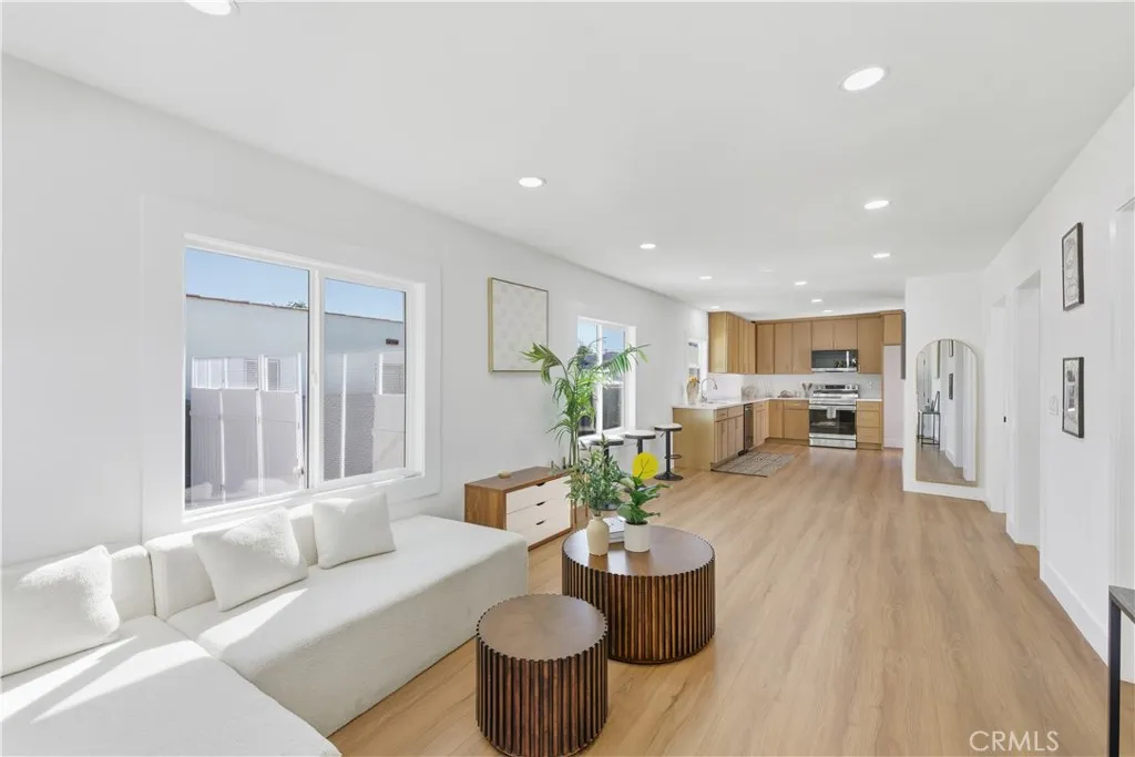 Step inside to discover a bright living space with new finishes, creating the perfect blend of comfort and style. featuring a cozy living area, a fully remodeled kitchen, and two comfortable bedrooms with ample natural light and recessed lighting. The full bathroom is clean and efficient, perfect for everyday living with a beautiful modern feel.