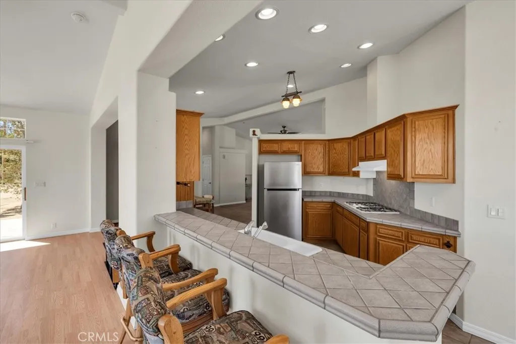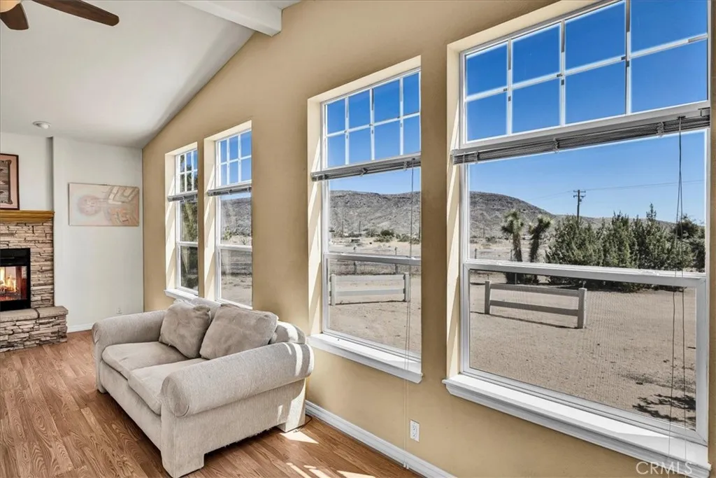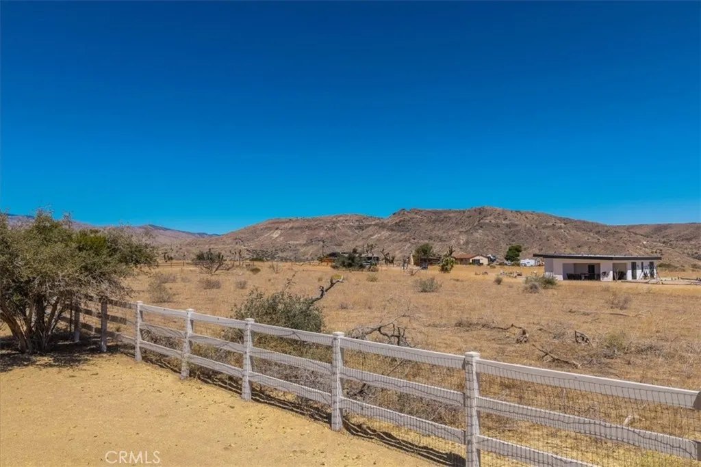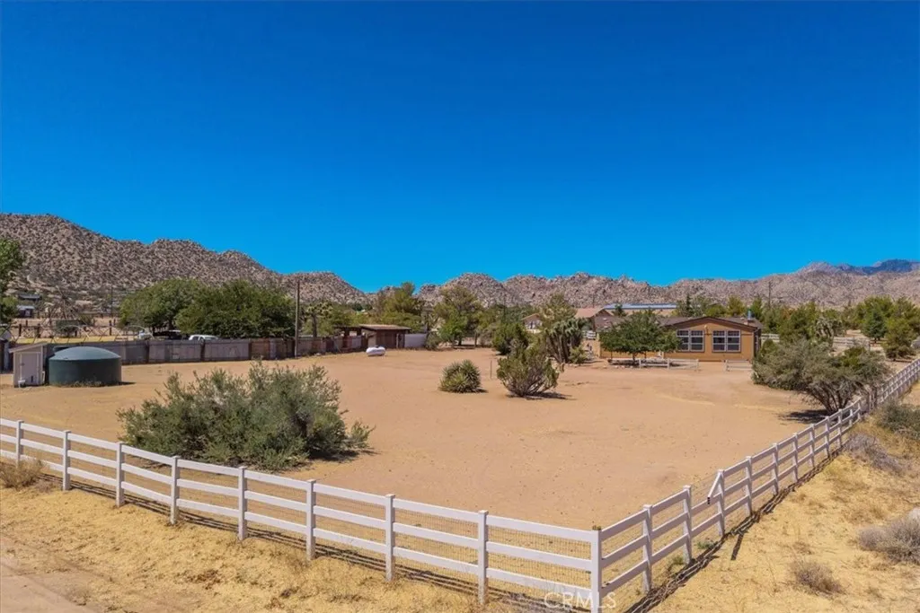 Own your own ranch right in the heart of Pioneertown! 1.26 acre horse property, just a block away from Mane Street, with a large, luxury ranch house with many upgraded features. Large covered patio in front to relax and enjoy the peace and quiet; high ceilings and oversized windows to take in the glorious views; stack rock fireplace to warm those chilly nights; spacious living room and open kitchen with bar for entertaining your guests; primary suite with walk-in closet, spa bathtub and separate shower in the roomy bathroom. Central heating and air conditioning with additional Master-Cool type swamp cooler. Indoor laundry room with included washer and dryer. Three bedrooms and two full bathrooms for a total of 1,742 square feet, all on a fenced-in and gated lot on a private cul-de-sac just a short walk to all that Pioneertown has to offer; world famous Pappy and Harriet’s Restaurant, Bar and Concert Venue, Pioneer Bowl, Red Dog Saloon and more! Just a short drive through the rock covered hills to Yucca Valley, Joshua Tree and Palm Springs.