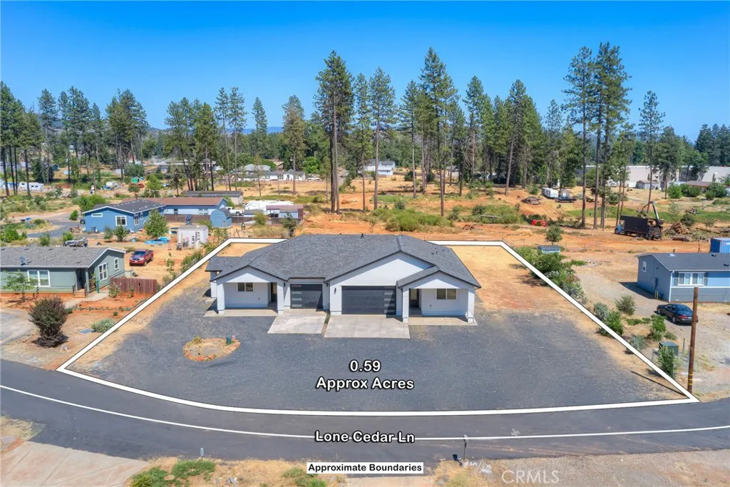 Modern Dual-Unit New Construction Home in Paradise, CA – Live in One, Rent the Other! Welcome to this stunning new construction home, built in 2024 and located in the peaceful community of Paradise, CA. This 5-bedroom, 3-bathroom property offers exceptional flexibility with two fully permitted units—perfect for multigenerational living or rental income. The main home features 3 spacious bedrooms and 2 full bathrooms across approximately 1,500 square feet. The open-concept layout is both stylish and functional, with beautiful designer touches throughout. The modern kitchen opens to the living room and includes quartz countertops, a stunning wall of tile backsplash with floating shelves, stainless steel appliances, and a large island with breakfast bar seating—perfect for entertaining or everyday living. The living area includes a gas fireplace that adds warmth and charm year-round. The primary suite offers a walk-in closet and a luxurious double vanity in the en-suite bathroom. Plus, there’s an attached 2-car garage for added convenience. The attached ADU is just as wonderful as the main home, offering 2 bedrooms, 1 bathroom, its own 1-car garage, and a thoughtfully designed layout. Whether you’re hosting guests, housing family, or earning rental income, this space is a valuable bonus. With a total of 2,500 square feet between both units, this home sits on a generous 0.59-acre lot featuring a thriving grapevine and plenty of room for gardening, recreation, or future customization. Don’t miss this rare opportunity to own a brand-new, income-generating property in a growing community. Whether you’re investing or settling into your dream home, this property offers outstanding value and versatility. Schedule your private tour today!