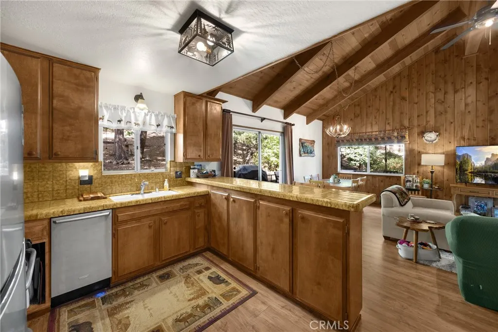 Nestled in the woods yet just a stone’s throw from Lake Arrowhead WITH Lake Rights, this charming gem offers the perfect balance of seclusion and convenience. Well-maintained and ready for your next adventure, it’s the idea place to unwind and reconnect with nature and the mountain environment. With dual access-from the front and rear-you have options for easy access with plenty of parking availability. Inside, you’ll find an open living area with vaulted ceilings, tongue-and-groove wood paneling, and a cozy wood burning fireplace-perfect for those chilly winter days. The main floor features a spacious living room and dining area, a fully equipped kitchen, two bedrooms and a full bath. And, with the laundry conveniently located right across from the bedrooms, everyday living couldn’t be easier. Upstairs you’ll find the primary suite to be a true sanctuary. Soaring ceilings, a private en-suite bath, and plenty of closet space create a peaceful escape. There’s also enough room for a small home office, reading nook, or yoga space, making this the perfect place to recharge. Wait .. there’s more! The lower level is a mostly unfinished basement with plenty of room for storage-whether it’s holiday decorations or lake toys, there’s room for everything you need. Sold mostly furnished, this four season cabin makes transitioning to your mountain getaway simple. C’mon Up – the mountains and lake are waiting for you!