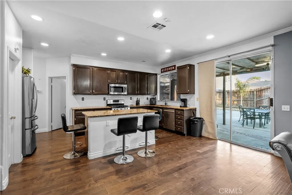 The main level boasts a warm and welcoming layout, highlighted by Pergo-style wood flooring that flows seamlessly throughout the living areas. The expansive kitchen is a true centerpiece, complete with granite countertops, a convenient center island with cooktop and breakfast bar, and ample cabinetry for storage. Perfect for gatherings, the open-concept design allows the kitchen to flow into the dining and living spaces, making entertaining both easy and enjoyable. A downstairs bedroom and full bathroom offer flexibility for multigenerational living or visiting guests.