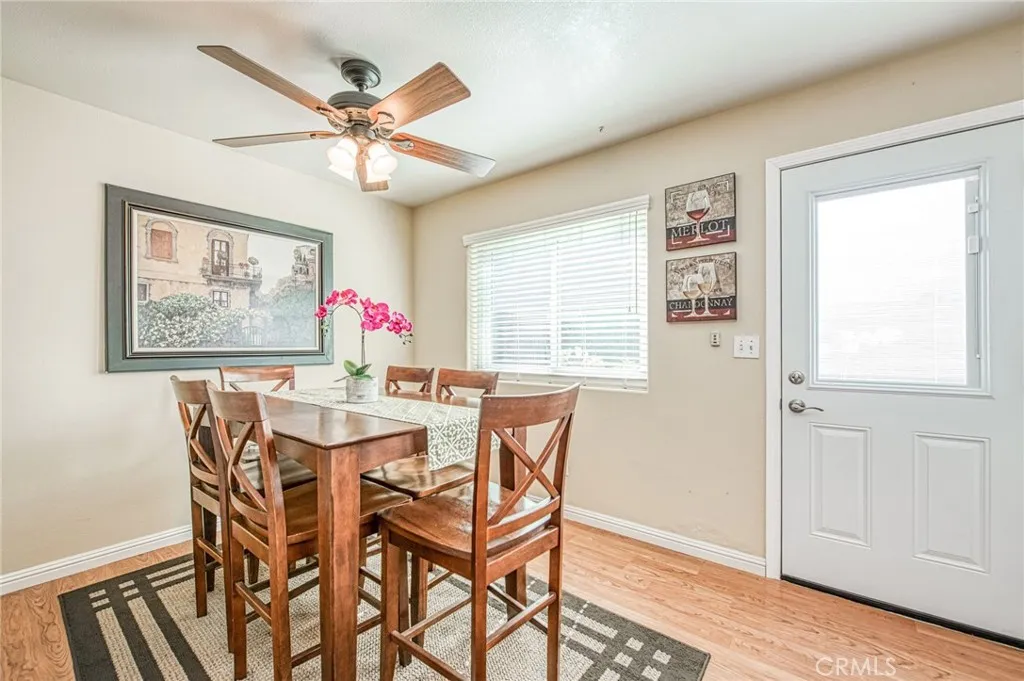 Elegant hardwood floors flow through the main living areas, while plush carpeting adds warmth to the bedrooms. The remodeled kitchen boasts crisp white cabinetry, granite countertops, and recently installed stainless steel appliances, including a modern range and microwave. With both counter-height and eat-in dining options, it’s ideal for everything from quick breakfasts to casual entertaining.