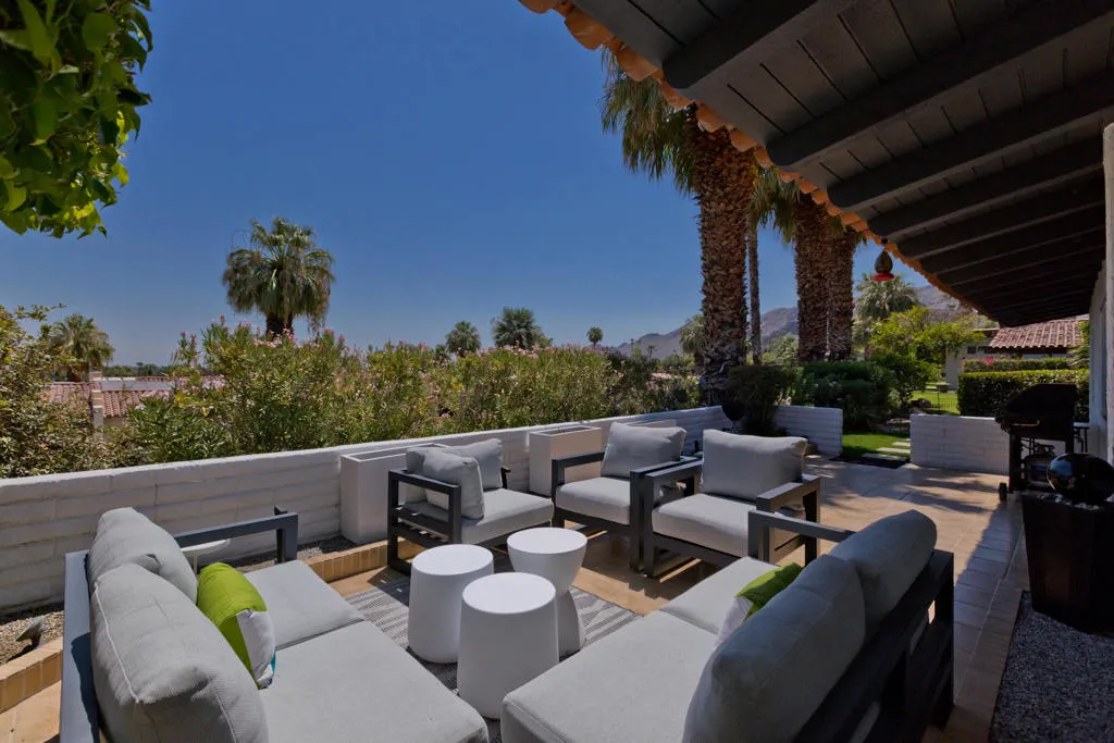 Located in the sought-after Thunderbird Villas mountainside community of Rancho Mirage, this beautifully remodeled 3-bedroom, 3-bath villa offers 1,792 sq. ft. of stylish desert living. Completely reimagined in 2019 with upgrades to the bedrooms’ wallpaper, carpet, and paint in subsequent years, the Villa blends modern design with effortless comfort. The open floor plan features a spacious living and dining area filled with natural light, while the updated kitchen and baths showcase sleek finishes and contemporary upgrades.Each of the three bedrooms is generously sized with its own full bath, providing both comfort and privacy for family and guests. Outdoors, multiple patios capture mountain and valley views, perfect for relaxing or entertaining. The Villa is just steps to a community pool of which there are 15. HOA includes guard gated security, landscaping, cable, and trash. Residents enjoy golf cart access to the legendary Thunderbird Country Club (membership required), along with the convenience of being just minutes from shopping, dining, and entertainment on El Paseo.A rare opportunity to own a turnkey Villa in one of the desert’s most historic and desirable communities.