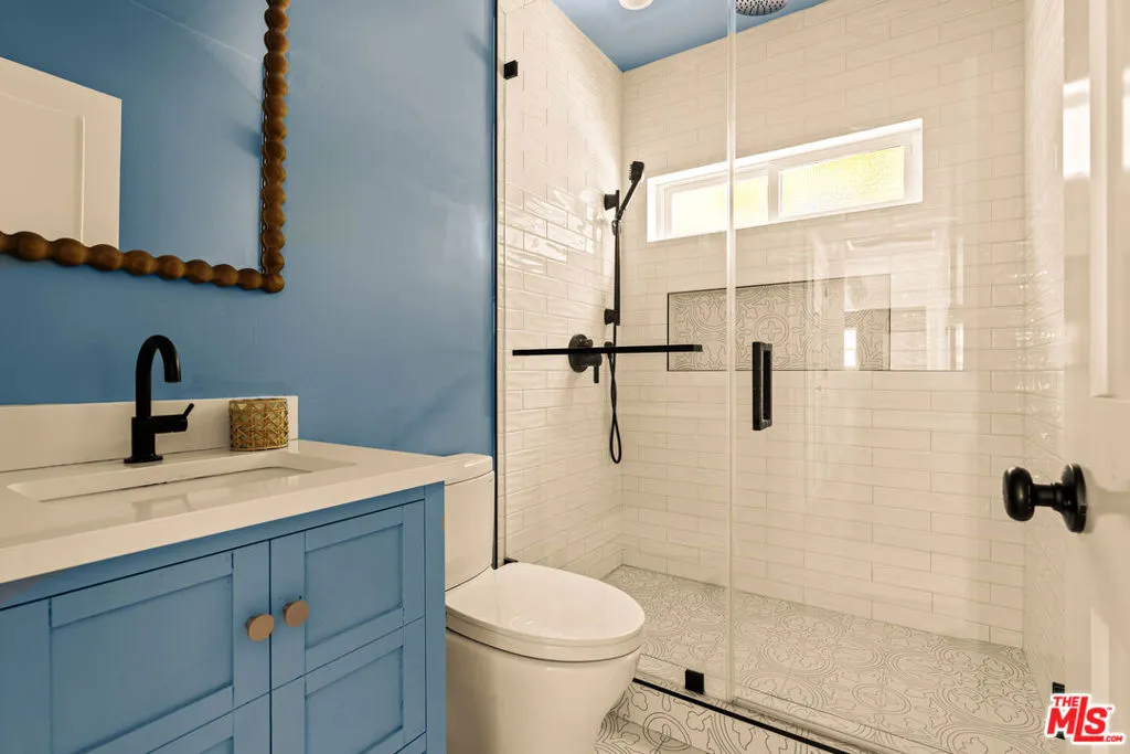 Set behind a gated entry, 4841 Don Pio Dr is a curated Woodland Hills residence that blends privacy, natural light, and refined design. This three-bedroom, two-bath home, plus a converted garage ideal for a studio, gym, or office, offers open-concept living enhanced by exposed beams, skylights, and thoughtful details throughout. A striking teal-tiled fireplace anchors the main living area, while the newly renovated kitchen features custom cabinetry, designer tile work, and stainless steel appliances. The spacious primary suite includes an en-suite bathroom, while two additional bedrooms offer flexibility. A secondary living room with double exposure open to a serene outdoor setting with a covered patio, turfed lawn, sauna, citrus trees, and lush garden beds. The property is equipped with solar panels, offering both sustainability and efficiency, and is securely gated with EV charging station. Ideally located near Ventura Blvd and The Commons at Calabasas, this gated home captures the essence of elevated California living with timeless style and comfort.