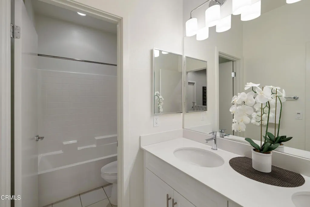 Behind the private gates of the sought-after VEO community lies a home that feels warm, refined, and effortlessly livable. This beautifully maintained 4-bedroom, 3-bath townhome offers the perfect blend of comfort, style, and connection, where every space invites you to slow down, gather, and enjoy the moments that matter most. From the moment you walk through the front door, you’re welcomed by wood-like flooring and an airy, open layout that flows naturally from the living room. out to a peaceful private patio perfect for morning coffee, evening wine, or quiet conversation under the stars. The dining area opens to the kitchen, both functional and beautiful, featuring granite countertops, eat-at counter seating, recessed lighting, and sleek stainless steel Frigidaire Gallery appliances, with the exception of a Samsung refrigerator. A guest bath and direct garage access offer everyday convenience, while thoughtful storage under the stairs keeps life organized and easy. Upstairs, the primary suite feels like a retreat with its walk-in closet, ceiling fan, and spa-inspired ensuite featuring dual sinks, stone countertops, and a subway-tiled glass shower. Three additional bedrooms provide flexibility for family, guests, or a home office, each with soft carpet underfoot and gentle natural light. A full hallway bathroom, a dedicated laundry room, and modern finishes complete the upper level. Life in VEO is about more than just your home, it’s about community. Enjoy resort-style amenities, including a sparkling pool and spa, clubhouse with kitchen and pool table, fire-pit, and playground. Whether it’s a weekend barbecue, a swim under the sun, or an evening stroll through the gated grounds, this is a place where neighbors become friends and every day feels a little brighter, ideally located in close proximity to Ralph’s Grocery Store with a private entrance from the complex to the store. Experience the ease of modern living and the warmth of true community in this turnkey townhome gem.