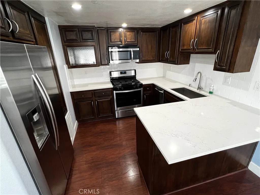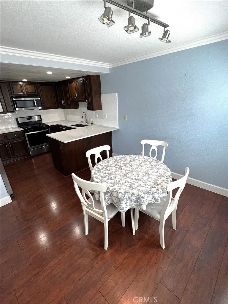 The modern kitchen includes stainless steel appliances, and both upstairs bedrooms offer en-suite baths and mirrored closets. In-unit laundry and gated 2-car tandem parking add convenience.