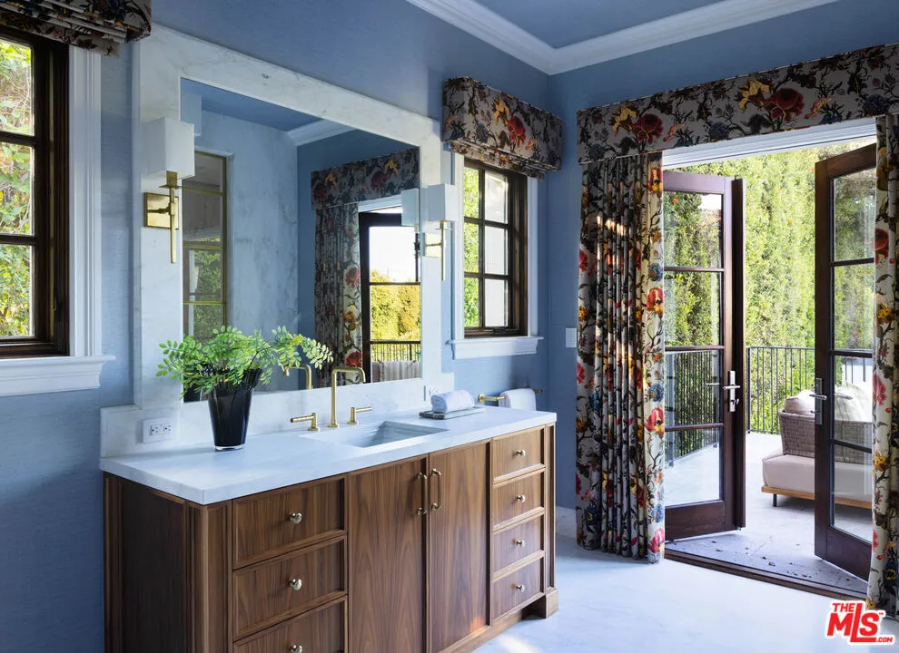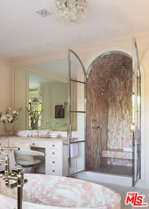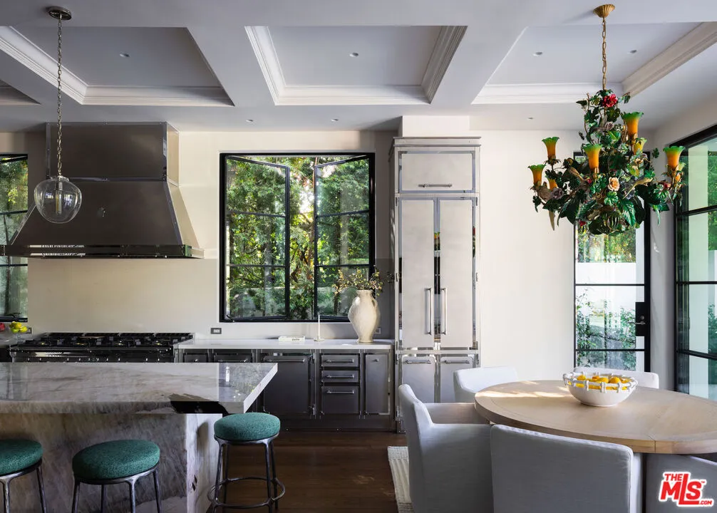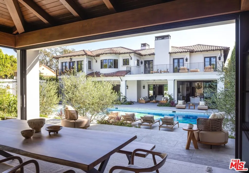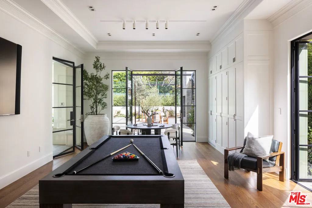 Behind the gates of a private cobblestone motor court in the heart of Brentwood Park stands The House of Hanover. Timeless European architecture reimagined through a contemporary lens this is the result of a three-year collaboration between AY Architects, Rattigan Construction, and Coppel Design. Spanning nearly 12,000 square feet entirely above grade, the residence reflects uncompromising craftsmanship at every turn. Dramatic ceiling heights and voluminous interiors unfold through a sequence of elegant spaces framed by arched passages, wide-plank wood floors, and black steel windows and doors accented with Nanz New York hardware. The Italian chef’s kitchen crafted by Officine Gullo Firenze is a statement in precision and beauty, showcasing hand-finished stainless steel cabinetry, an eight-burner range, and Gaggenau dual ovens and refrigeration. Formal and informal living rooms, a pub lounge, game room, library and dining salon together create a seamless flow ideal for both grand entertaining and intimate living. Upstairs, five generous en suite bedrooms reveal an artful interplay of pattern and stone, featuring House of Hackney wall coverings and exquisite natural marbles. The primary suite is a private sanctuary with dual baths clad in Norwegian Rose marble and custom walk-in dressing rooms, each designed with couture-level detail. Beyond the main residence, the grounds evoke a private resort with a resort-sized pool with Badu swim jet, north-south tennis court and a spectacular entertainer’s pavilion complete with raised-beam ceilings and a full bar overlooking the tennis court. Additional amenities include a detached professional gym, state-of-the-art theater, pool changing room with outdoor shower, full outdoor kitchen with bbq and pizza oven and a three-car garage with built-in storage. Throughout, every fixture and finish tells a story of connoisseurship: lighting by Paul Ferrante, Mechini, I Borbone and Murano chandeliers, plumbing by Sherle Wagner and THG, Crestron home automation, solar system and a backup generator for seamless comfort and effortless lifestyle. The House of Hanover represents the rarest form of Los Angeles luxury, a one-of-one estate of timeless character and contemporary grace.