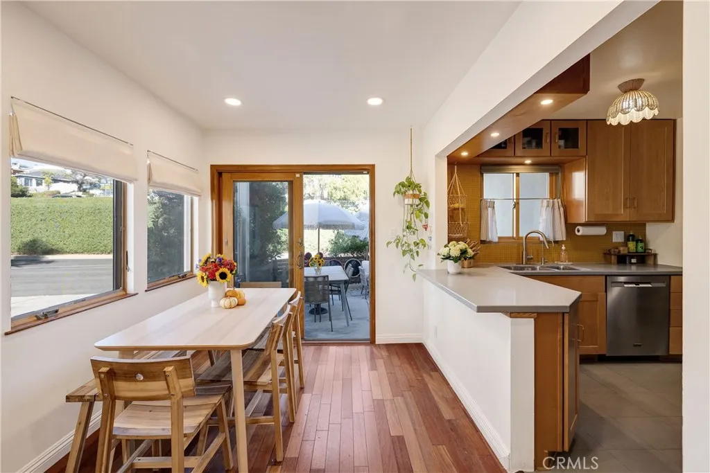 A rare opportunity in the exclusive South End Sand Section of Manhattan Beach, this beautifully remodeled beach house blends timeless charm with thoughtful modern updates. The 3 bedroom plus 2 bathroom home is nicely situated on a corner lot overlooking the scenic greenbelt. The remodeled kitchen includes stainless-steel appliances, Corian countertops, a mosaic tile backsplash, pantry space, and a breakfast bar that opens to a spacious patio perfect for dining al fresco. Recent enhancements include central air conditioning, new oven/range and microwave, upgraded lighting and electrical throughout, new window treatments, a smart thermostat, and a digital lock for keyless entry and more. Outside, the landscaping is refreshed with new roses, a drip irrigation system, and a freshly painted and sealed side yard ideal for entertaining. Plenty of storage area in the attic + crawl space and pantry/laundry area off kitchen. Just a short stroll to the beach, MB pier, top-rated schools, and vibrant downtown shops and restaurants. This turnkey coastal gem perfectly combines classic beachside charm, modern comfort, and an unbeatable location.