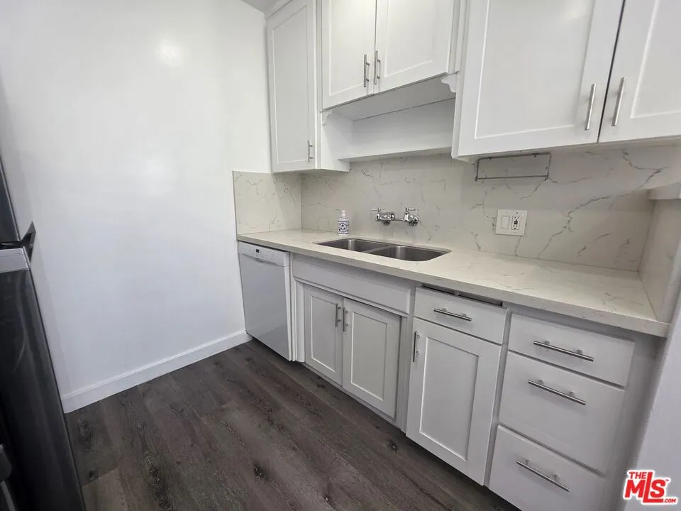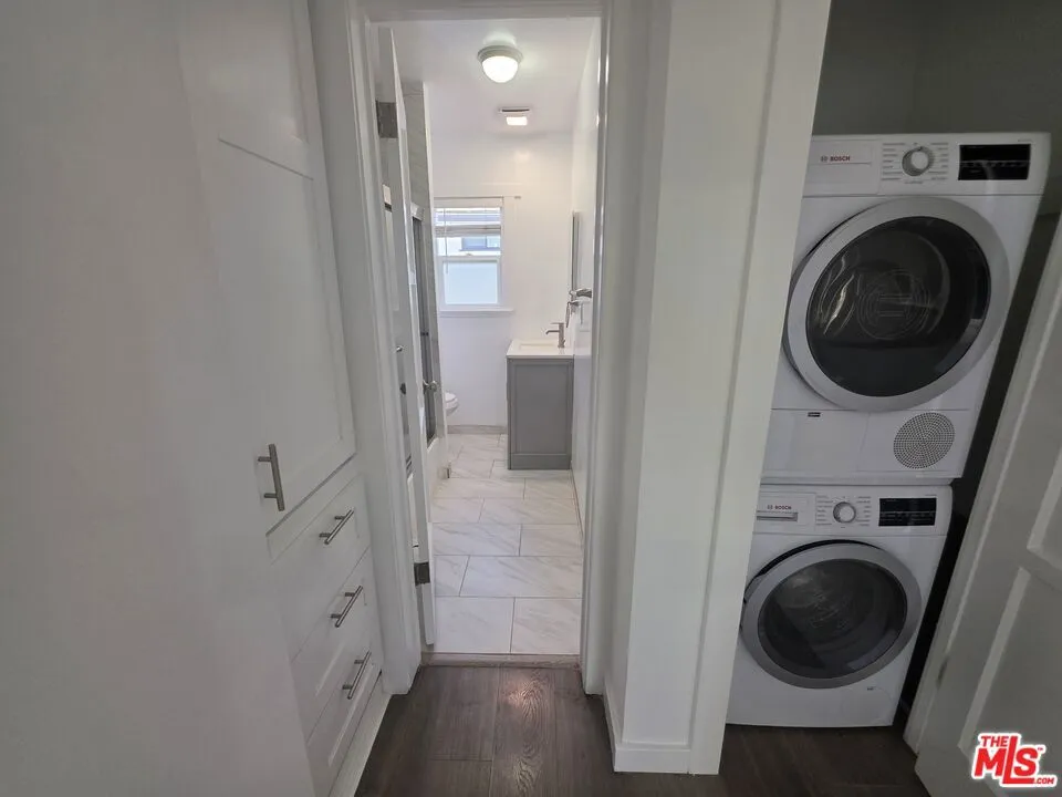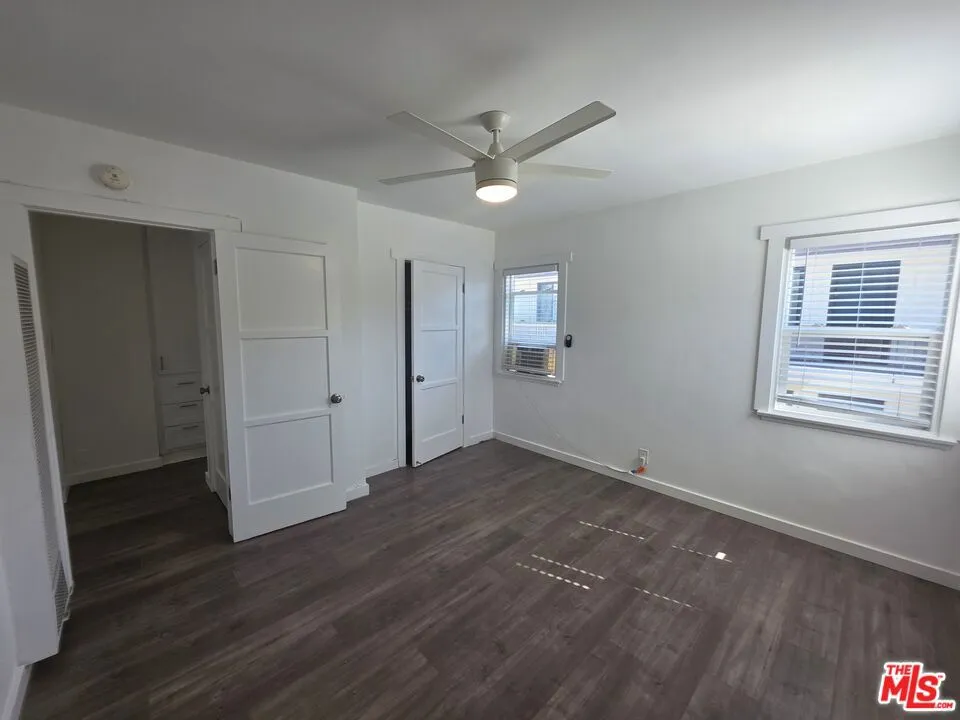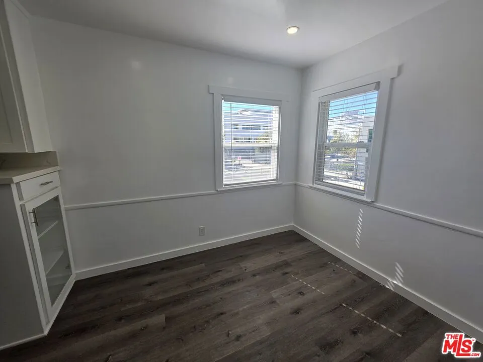 Experience the best of Santa Monica living in this beautifully remodeled top floor one bedroom one bathroom apartment located just minutes from the Santa Monica Pier, Venice Beach, the 10 Freeway, and countless local attractions. Inside, enjoy a fresh blend of modern style and classic charm with newly painted walls, newer hardwood style flooring, and plenty of natural light streaming through multiple windows, including a lovely view of a big green tree just outside the living room. Charming arched entryways add character while a wall heater provides cozy comfort. The updated kitchen features white shaker cabinets, sleek quartz countertops, black stainless steel appliances, and an eat in dining area perfect for daily meals or casual entertaining. The bedroom offers both a ceiling fan and window air conditioner for personalized comfort, and the in unit Bosch stacked washer and dryer provide premium convenience. Parking is available onsite and residents have access to a shared backyard ideal for outdoor relaxation or entertaining. Water is included in the rent while tenants cover electricity, gas, cable, and internet. With only one shared wall and an abundance of natural light throughout, this inviting apartment is available now and offers an exceptional opportunity to live in one of Santa Monica’s most desirable neighborhoods. Schedule your private tour today.