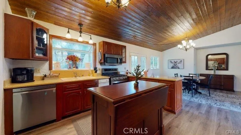 We have a 4 bedroom 2 bath home , Kitchen has plenty of room with an attached dining area , Livingroom with fireplace , also livingroom leads into outdoor patio, separate laundry room , 2 car attached garage , one bedroom is on the downstairs floor with a full bath , Family room / Pool table room and with a fireplace , Downstairs is perfect for the in-laws. Property is fully furnished with tv’s in all rooms, one bedroom has bunkbeds and the other 3 bedrooms have a queen size bed , the 2 front decks were installed within the last 2 years . All waterproof flooring throughout was installed within the last 2 years. Also includes appliances.