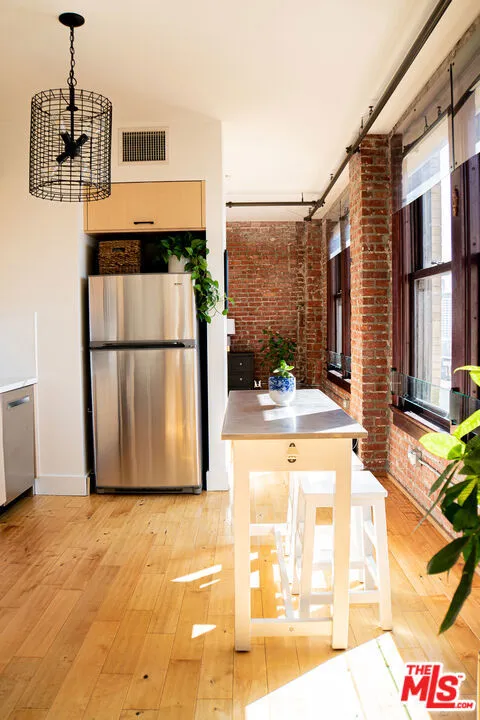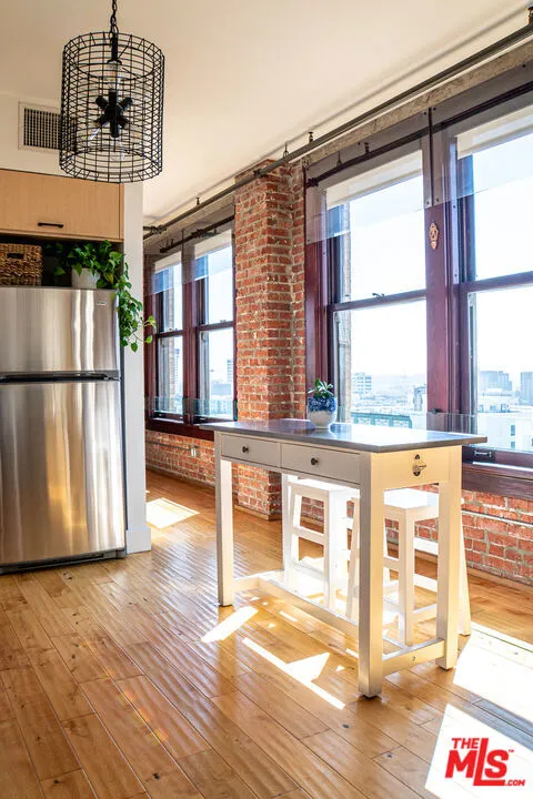 Gorgeous Updated Loft with Panoramic City Views! This is an incredible opportunity to lease a contemporary loft in The Rowan Building, the crown jewel of Downtown LA’s Historic Core. Unit 1102 is a spacious 1 bed / 1 bath condo with an open, modern loft layout. The interior tastefully blends historic character with modern finishes and comforts, including hardwood floors, soaring ceilings, custom Scavolini cabinetry, updated countertop and backsplash, high-end stainless appliances, in-unit W/D, and central heat and AC with smart thermostat. The enormous full bath features stone tile, granite counters, and an extra-deep soaking tub. A wall of huge, mahogany-framed windows brings in an abundance of natural light to the unit and opens to an expansive view that stretches from DTLA all the way to the mountains! Originally built in 1912, the historic Rowan Building was designed by famed LA architects Parkinson & Bergstrom in the iconic Beaux-Arts style. In 2009, the building was extensively restored and converted into live-work condominiums. Historic details have been preserved including exposed brick walls, Carrara marble corridors, and Art Deco elevator doors. The property boasts countless amenities including 24/7 security and concierge, bike storage, and a resident lounge. Perfectly-manicured outdoor spaces include a lush tropical garden, pet relief area, hot and cold plunge pools, outdoor seating with fire pits, and built-in gas BBQs. The Rowan is perfectly situated within the vibrant Historic Core neighborhood: adjacent to Spring Street Park, two blocks from the Pershing Square Metro, and surrounded by the countless restaurants, culture, transportation and nightlife options to compliment the perfect downtown lifestyle. This is the DTLA lease opportunity that you have been looking for! Showing by appointment. Tenant pays Electric and Cable/Internet. Parking and storage available for an additional fee.
