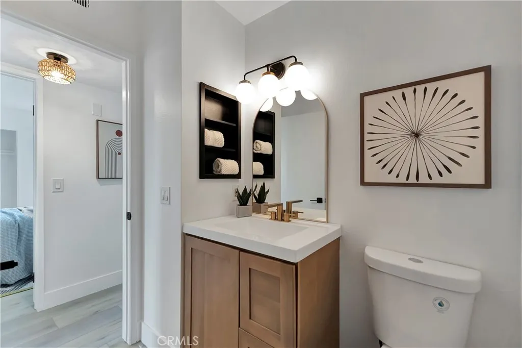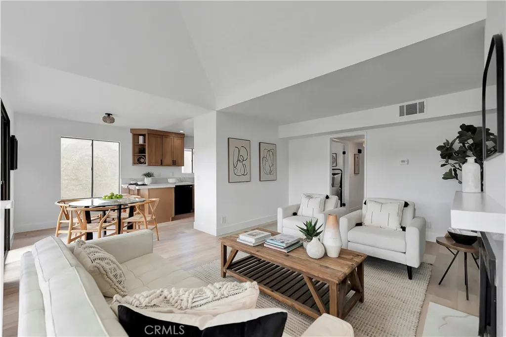 Stylish Living in the Heart of La Palma! Welcome to your beautifully remodeled sanctuary where modern design meets everyday comfort. Step inside and be greeted by luxury vinyl plank flooring that stretches gracefully throughout the home, setting the stage for effortless elegance. The chef’s kitchen shines with warm wood-tone cabinetry, dazzling quartz countertops, and brand-new appliances. It’s a space that begs for both gourmet cooking and lively conversation. Soaring vaulted ceilings and walls of windows bathe the living areas in natural light, while a cozy fireplace adds just the right touch of warmth and charm. Retreat to your primary suite oasis, featuring a spa-inspired bath with stylish vanities and champagne-gold finishes. Enjoy all that the community has to offer with it sparkling pool and spa. This is more than a home—it’s a lifestyle upgrade waiting for you. Don’t miss out, schedule your showing today ~