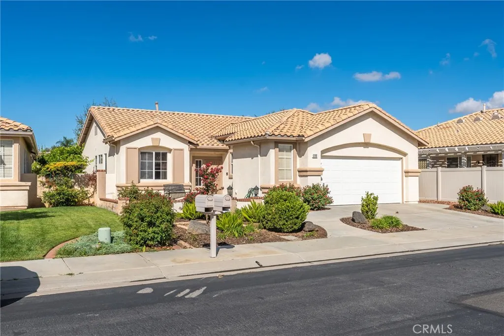 Welcome to 1851 Riviera Ave, a beautifully maintained single-story home in the highly sought-after Sun Lakes Country Club. This 2-bedroom, 2-bath home offers over 1,500 sq. ft. of bright, open living space with tasteful updates throughout. The kitchen features stainless steel appliances, while the family room includes a cozy fireplace for added charm and functionality. Enjoy two patios; one in front for your morning coffee and a covered patio in back with a hot tub for relaxing or entertaining. The home also includes vinyl fencing, a 2 car garage with built-in cabinets, and plenty of storage. Located in a resort-style 55+ community with an amazing golf course, pools, tennis courts, and more, this move-in-ready gem combines comfort, convenience, and an unbeatable lifestyle.