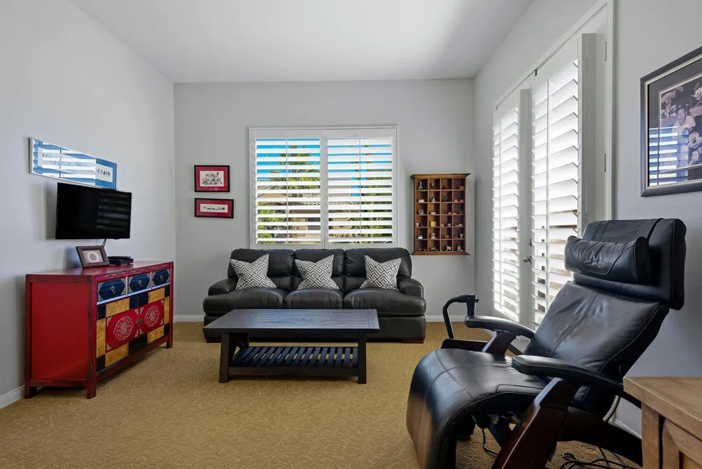 Step into desert living at its best with this stunning Monaco floor plan in highly desirable Sun City Palm Desert. This move-in-ready home offers 3 bedrooms, 3 bathrooms, and approximately 2,515sf of beautifully updated living space. The light-filled open layout features elegant finishes throughout, including remodeled interiors that blend comfort and sophistication. The chef’s kitchen opens seamlessly to the family room and casual dining area–perfect for entertaining. The spacious primary suite offers a spa-like bath and ample closet space, while two guest rooms provide flexibility for visitors and/or a home office. Outdoors, enjoy a true resort-style setting with a south-facing backyard designed for relaxation and entertaining. Multiple paver finished seating and dining areas–one elevated with a private shade tree– all surrounded by lush landscaping and a built-in barbecue for alfresco gatherings. The oversized laundry room provides tons of storage as does the 2-car + golf cart garage. Located within the gates of Sun City Palm Desert, residents enjoy world-class amenities including golf courses, pickleball, tennis, fitness centers, pools, restaurants, and endless social clubs–all with remarkably low HOA dues. Plus, a bonus is the low-cost electricity from Imperial Irrigation District (IID). A beautifully remodeled, move-in ready opportunity in one of the desert’s most sought-after active adult communities!