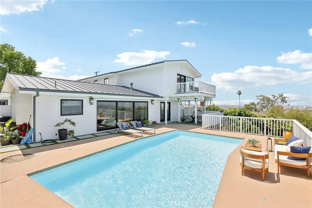 Stunning Quality – Award-Winning Designer Vision – Unrivaled Panoramic Vistas…This extraordinary home is a true turnkey masterpiece—featured on the cover of RUE Magazine—the home delivers rarefied luxury, meticulous craftsmanship, and cinematic views that sweep from the Pacific Ocean and the glittering LA skyline to the Port of Los Angeles. A stately Colonial-style porch sets the stage with timeless curb appeal, welcoming you into an interior that has been reimagined with flawless precision. Classic architectural charm merges seamlessly with modern sophistication, where every detail has been curated for elegance, comfort, and style. The expansive great room makes a striking impression with soaring walls of retractable glass that dissolve the boundary between indoors and out. An entertainer’s dream backdrop framed by dazzling horizons. A sleek grey marble fireplace, custom built-ins. The chef’s kitchen is an unrivaled centerpiece, crowned by a dramatic Calacatta marble island. Outfitted with professional-grade Viking appliances, bespoke cabinetry, and designer finishes, it strikes the perfect balance between beauty and utility. A hand-painted Tabarka terra-cotta tile backsplash infuses warmth, while the adjoining dining area glows with Farrow & Ball wallpaper and refined wainscoting. Adding an element of intrigue, a swing-out bookcase opens to a cleverly hidden mudroom with laundry and a chic powder room—a playful, practical touch that elevates everyday living. Two spacious bedrooms share a beautifully appointed bath, with one offering direct access to the lush private yard. Upstairs, a sunlit family/media room continues the home’s sophisticated narrative, with blackout curtains, built-ins, and a beadboard wet bar topped in granite. A private deck extends the entertainment potential. The primary suite is a tranquil retreat, complete with spa-like bath, soaking tub, dual vanities, walk-in shower, and a discreetly placed walk-in closet. For the enthusiast, the oversized garage includes custom cabinetry and a rare 6-foot auto maintenance pit. The expansive lot offers further opportunity with an undeveloped rear section—accompanied by proposed landscape plans for inspiration. Just minutes from Rolling Hills Plaza, the South Bay Tennis Center, Alta Loma Park, and the South Coast Botanic Garden, this one-of-a-kind estate is a breathtaking fusion of award-winning design, uncompromising quality, and sweeping panoramic vistas.