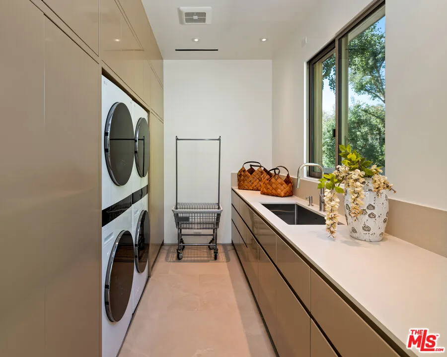 Completely Renovated & Move-In Ready. Perched atop an ultra-private knoll in the prestigious Trousdale Estates, this recently built and fully remodeled residence is secured by stately contemporary gates and commands panoramic views stretching from city lights to the Pacific Ocean. Blending practical simplicity with striking elegance, the home offers both refinement and comfort at every turn. A sweeping 300+ ft driveway leads to dramatic grounds and a residence designed for modern living. The grand formal foyer opens to a 75-ft art gallery hallway with soaring 12-ft ceilings, skylights, and custom sandstone floors an architectural showcase bathed in natural light, ideal for displaying a world-class art collection. The oversized living room is wrapped in floor-to-ceiling glass walls that frame breathtaking vistas. Designed for seamless entertaining, this space connects effortlessly to the new saltwater pool and expansive outdoor living areas. The gourmet, eat-in kitchen is a chef’s dream, centered around a striking fireplace and appointed with top-tier appliances, a generous butler’s pantry, and bespoke finishes. The adjacent family room continues the home’s theme of glass-wrapped spaces and panoramic outlooks. The primary suite is a private retreat, complete with a refreshment station, fireplace, dual spa-inspired bathrooms, expansive walk-in closets, and an adjoining study. Three additional bedroom suites ensure comfort and privacy, complemented by a large laundry and utility room as well as an elegant arrival lounge . For future flexibility, the property offers the option to expand onto the additional lot – or preserve it as a natural extension for enhanced privacy and security.