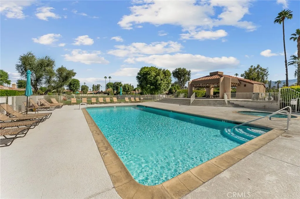 Welcome to Desert Living at Its Best! Nestled in the small gated community of Monterey Sands in beautiful Palm Desert, this beautifully maintained 3-bedroom, 2-bath single-story end unit condo offers the perfect blend of comfort, convenience, and resort-style living. A rare find on owned, not leased land, this home provides lasting value and peace of mind. Step inside to find an inviting open floor plan with vaulted ceilings, abundant natural light, and an atrium that fills the home with sunshine and charm. The spacious living room opens seamlessly to a private patio with views of the greenbelt and lush landscaping—ideal for morning coffee or evening gatherings under the stars. Enjoy a modern kitchen with granite countertops and stainless steel appliances, a two-car garage for added convenience, and easy access to community amenities. Located just minutes from El Paseo’s world-class shopping and dining, The Shops at Palm Desert, and top-rated golf courses, you’ll love being close to everything that makes Palm Desert living so special. Relax by the sparkling community pool and spa, surrounded by mature trees and mountain views. Whether you’re looking for a full-time residence, vacation home, or investment property, this one checks all the boxes. Don’t miss it!