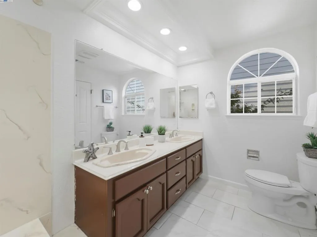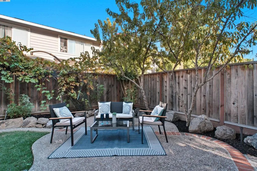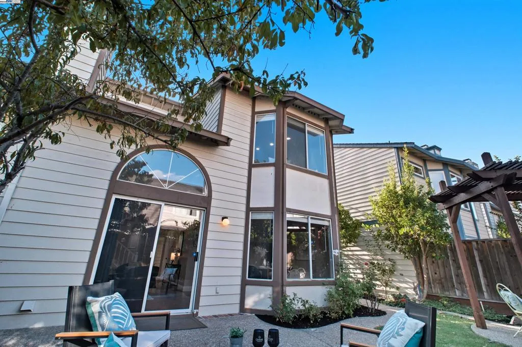 Welcome to this bright and spacious home with a west-facing entry door, ideally situated along the scenic Iron Horse Trail in the desirable New Castle community of San Ramon. This beautifully updated 3-bedroom, 2.5-bath residence features soaring vaulted ceilings, recessed lighting, new chandeliers in the dining area and kitchen, and a cozy fireplace in the living room. New carpet has been installed on the stairs, enhancing the home’s fresh and inviting feel. The modern kitchen is equipped with a new dishwasher, refrigerator, and microwave. The primary suite offers both a walk-in closet and an additional closet, providing ample storage space. Step outside to a charming backyard with a pergola, perfect for relaxing or entertaining, surrounded by multiple fruit trees. You’ll also love the spacious side yard and beautifully maintained front yard, adding to the home’s curb appeal and outdoor enjoyment. Located within walking distance to top-rated schools, City Center, Central Park, and Bishop Ranch, this move-in-ready home offers the perfect blend of comfort, convenience, and charm — with access to an HOA pool and nearby playground.