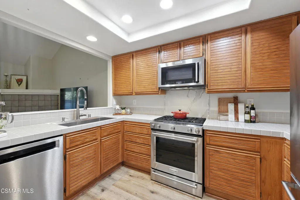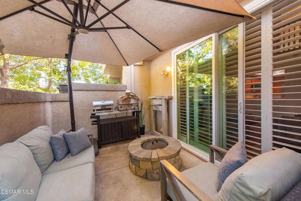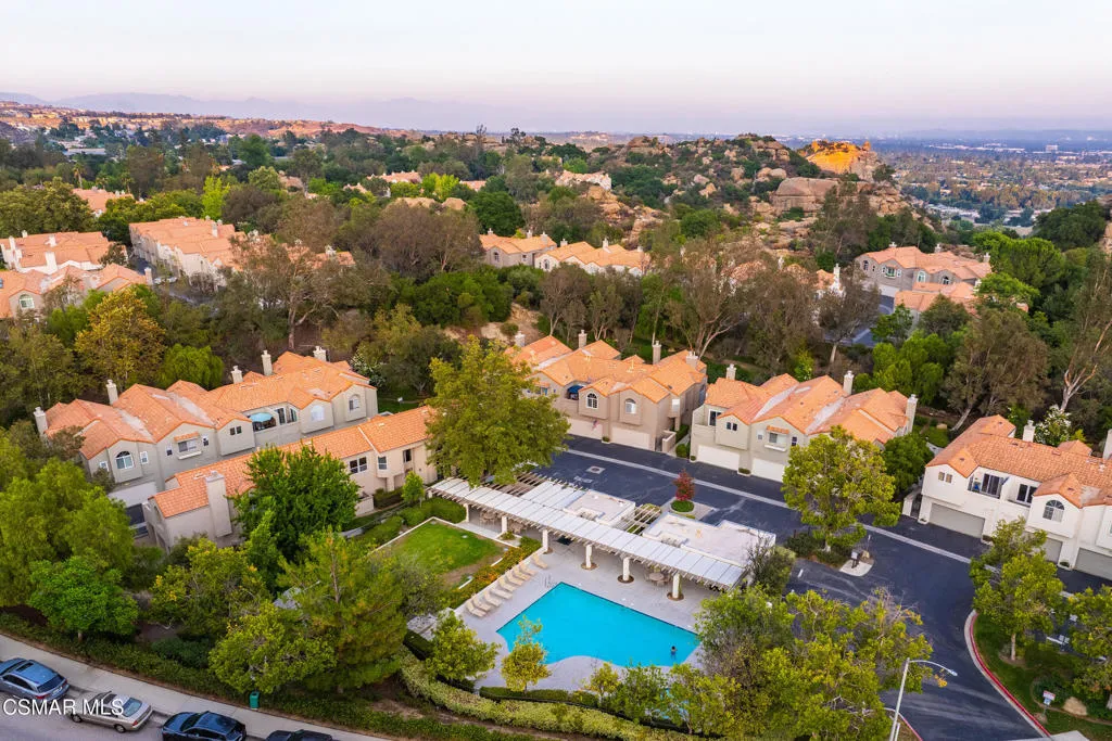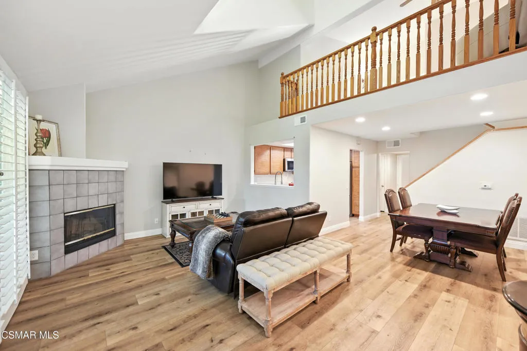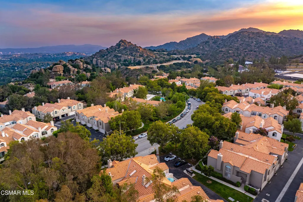 Gorgeous Spanish-Style Townhome in Scenic West Chatsworth! Perched in a serene, Spanish-inspired community near the iconic ”Garden of the Gods” and Stoney Point rock formations, this beautifully updated home offers the best of California living–on the cusp of Ventura and Los Angeles Counties.Step through a peaceful front patio with a stunning outdoor stone fireplace, and into a warm, light-filled family room with soaring vaulted ceilings, cozy fireplace, and a newer dual-pane slider with plantation shutters. Wood-like floors flow seamlessly throughout, creating a clean, modern feel. The upgraded kitchen features a full suite of high-end KitchenAid stainless steel appliances, open sightlines to the family room, and an adjoining dining area with dramatic ceilings–perfect for both everyday comfort and entertaining. Retreat upstairs to the spacious primary suite with a private balcony, expanded walk-in closet, and luxe en suite bath. Spacious secondary bedroom offers access to the upper private balcony. Large loft offers ample opportunity to be transformed to fit your lifestyle. Bathrooms are enhanced with newer vanities, modern fixtures, and abundant natural light from a skylight. Additional upgrades include recessed lighting, fresh neutral paint, upgraded baseboards, newer dual-pane windows and sliders, newer HVAC, and water heater. Sleek newer refrigerator, washer, and dryer are all included. 2 attached car garage with upgraded cabinets and flooring! Perfect to showcase your cars. Enjoy resort-style community amenities including lush greenbelts, a sparkling pool, and a relaxing spa. Conveniently close to the 118 Freeway, shopping, dining, hiking trails, and surrounded by breathtaking mountains–this is California living at its finest.
