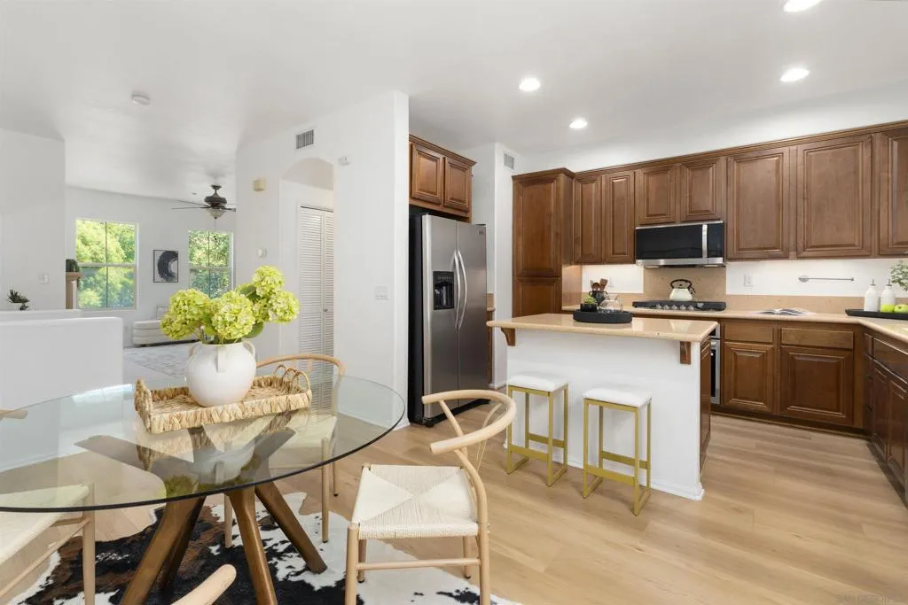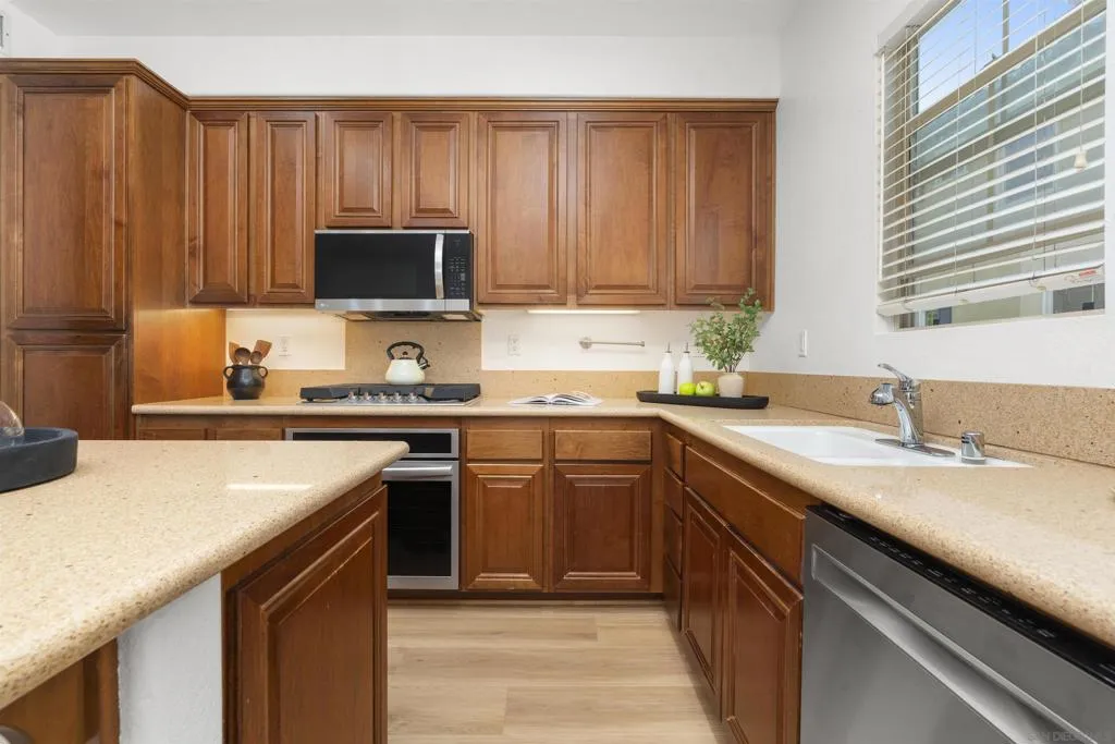 Come experience the best of Mission Valley-living in this beautiful, rarely available Terraces townhome at Escala! Tucked in this amenity-rich community is our latest offering, a gorgeous tri-level townhome that is turn-key and waiting for its new owner. Upon entry, you’ll immediately notice the handy flex-space room that could be an office, den, or bedroom. Fresh paint and carpet greet you throughout as you move upstairs to the main living area where you’ll find your generously sized chef’s kitchen with its island, updated appliances, and plentiful cabinet & counter space. Your adjacent dining room and living area feature lovely natural light and a cozy fireplace for memorable meals and fun movie nights. You’ll appreciate the new LVP flooring throughout this area, and the convenient in-unit laundry and half bath. Move upstairs to two more bedrooms and baths in a user-friendly split floor plan, assuring privacy in each room. If you don’t know Escala, you’ve been missing out! With its gorgeous pool area, walking trails, dog park, clubhouse and more, this community features some of the best amenities available, all in an uber-convenient location close to Fashion Valley mall, Hazard Center, USD, freeways, and more. Come see before it’s gone!