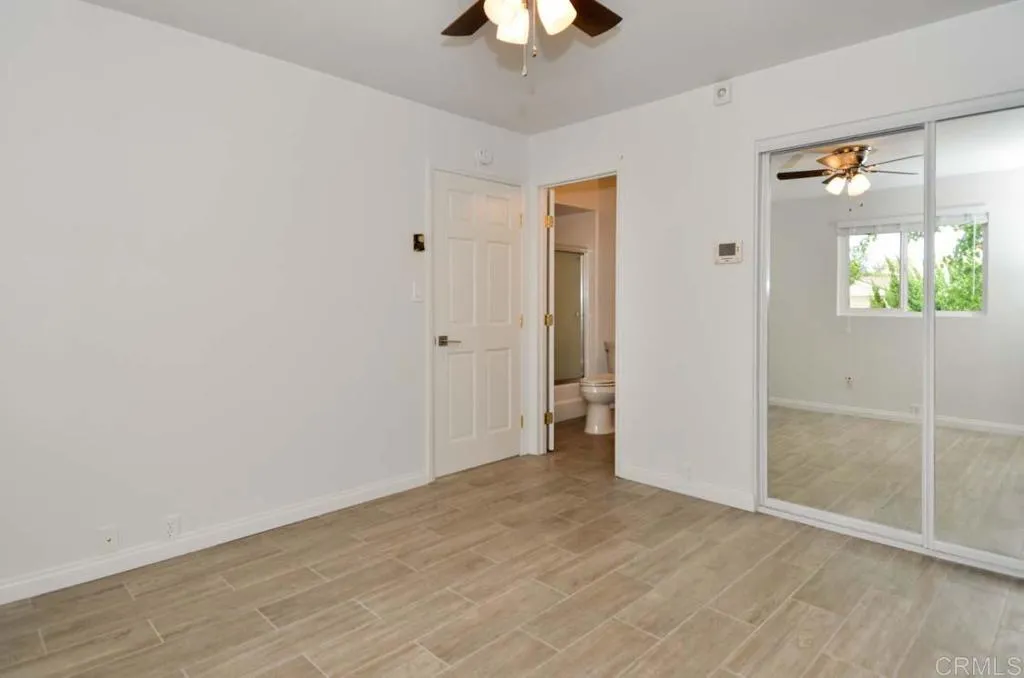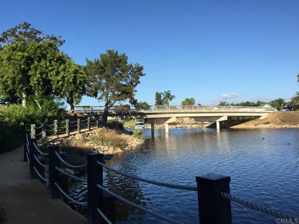 Beautiful, private, upper story end-unit with AMAZING PANORAMIC VIEWS from kitchen, dining, living room, deck and large bedroom in Lake San Marcos. New, high-end AIR CONDITIONING system zoned per room, so temperature in both bedrooms and the living area are controlled separately. GREAT FLOOR PLAN, each bedroom has its own private bathroom! Granite counters in kitchen and bathrooms, wood-pattern porcelain tile flooring throughout-NO carpet anywhere. Full size washer, dryer and oven. Large room with window in back of private single stall garage for storage. Walk to San Marcos High, High Tech Middle, High Tech High Schools, the Lake and restaurants! Large closets and keyed wall safe in larger bedroom, dual pane windows. North-facing windows make condo light and bright, but not hot. Ceiling fans in both bedrooms. One pet allowed, upon owner approval and pet deposit.