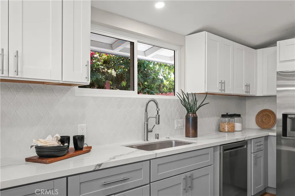 Stunning Modern Home with Premium Upgrades! This beautifully updated property boasts a newer roof, a brand-new gourmet kitchen with two tone cabinets, custom backsplash, new appliances, and new flooring throughout. Enjoy a low-maintenance lifestyle with artificial turf and drought tolerant landscaping in the front and back yards. The pool has been refreshed with new plaster and tile and ready for your next pool party. Stay comfortable year-round with a new high-efficiency air conditioning system, complemented by new windows and doors throughout, an updated electrical panel and modernized bathrooms. Perfectly located near the 55, 57, 5, and 22 freeways for easy commuting. Move-in ready and designed for luxury and convenience—schedule your tour today!