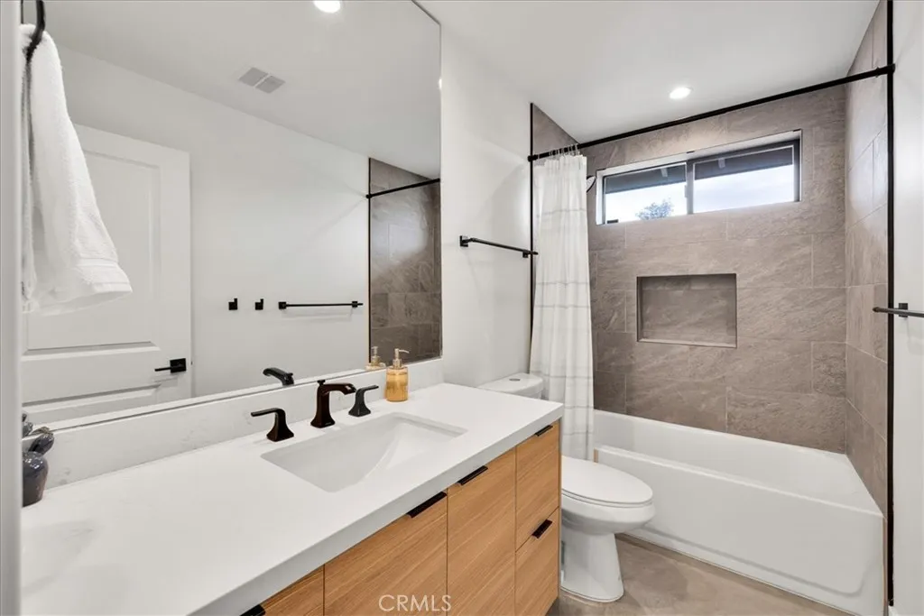 The heart of the home is the expansive kitchen, complete with quartz countertops, stainless steel appliances, and a generous island that flows seamlessly into the spacious living room—ideal for hosting family and friends.