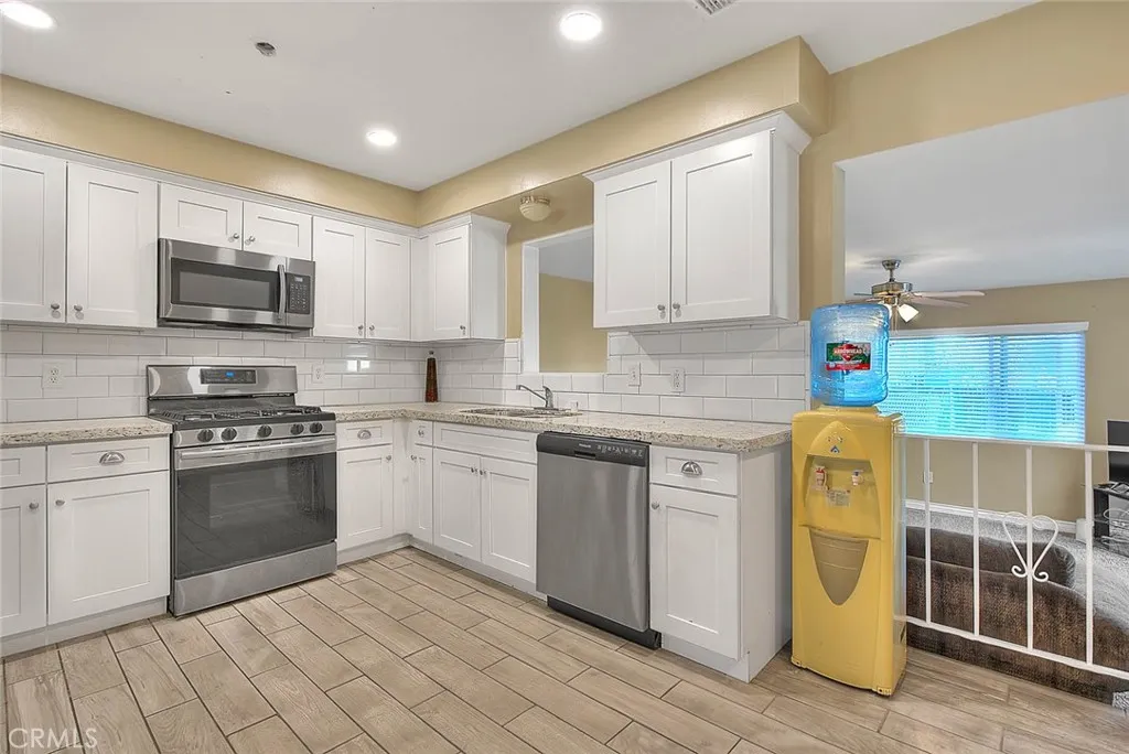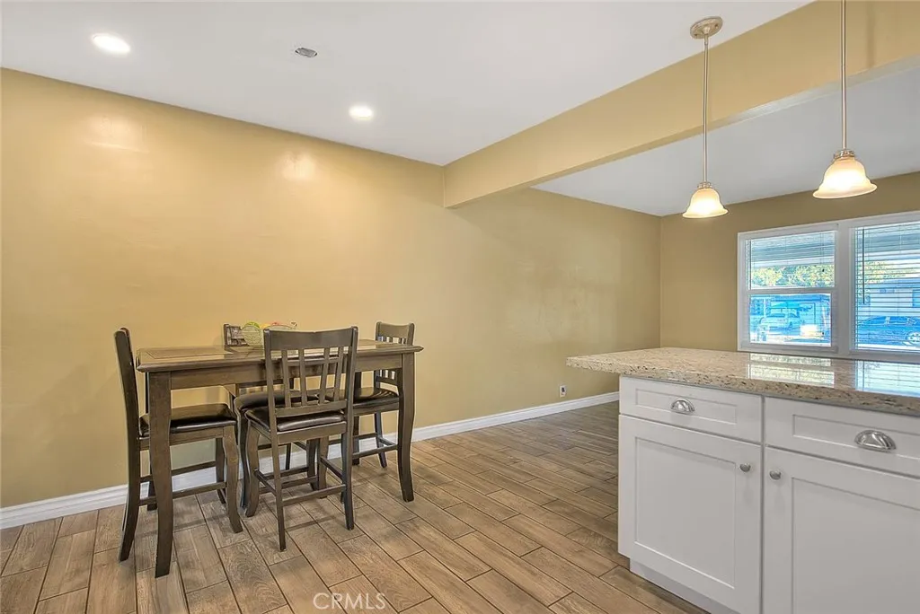 Nice Home in Corona with Three Bedrooms, Two Bathrooms and 1536 Square Feet of Living Space. This Home Features an Upgraded Kitchen with Granite Counter Tops, Newer Cabinets, Stainless Steel Appliances Including a Gas Range, Microwave and Dishwasher. The Kitchen Also has a Dining Space, Recessed Lighting and Pendant Lights. Tile Flooring in the Living Room & Kitchen and Carpeting throughout the Remainder of the Home. Central A/C and Forced Air Heating & Dual Paned Windows. Split Floorplan Perfect for Multi-Generational Living with Two Bedrooms and One Bathroom and Then an Additional Bedroom and Bathroom with the Living Area In Between. There is Also a Large Family Room with a Ceiling Fan and a Dual Paned Slider Door to the Rear Yard. One Car Garage with Aluminum Roll Up Door and a Utility Room with Laundry Hookups and Built in Cabinets for Storage. Upgraded Front Door with Glass Accents and a Large Front Porch Area. Situated on a Large Lot with a Brick Paver Patio in Rear Yard, a Fenced Dog Run Area and 3 Fruit Trees. (Lime, Lemon and Pomegranate). Newer Composition Roof and Water Heater.