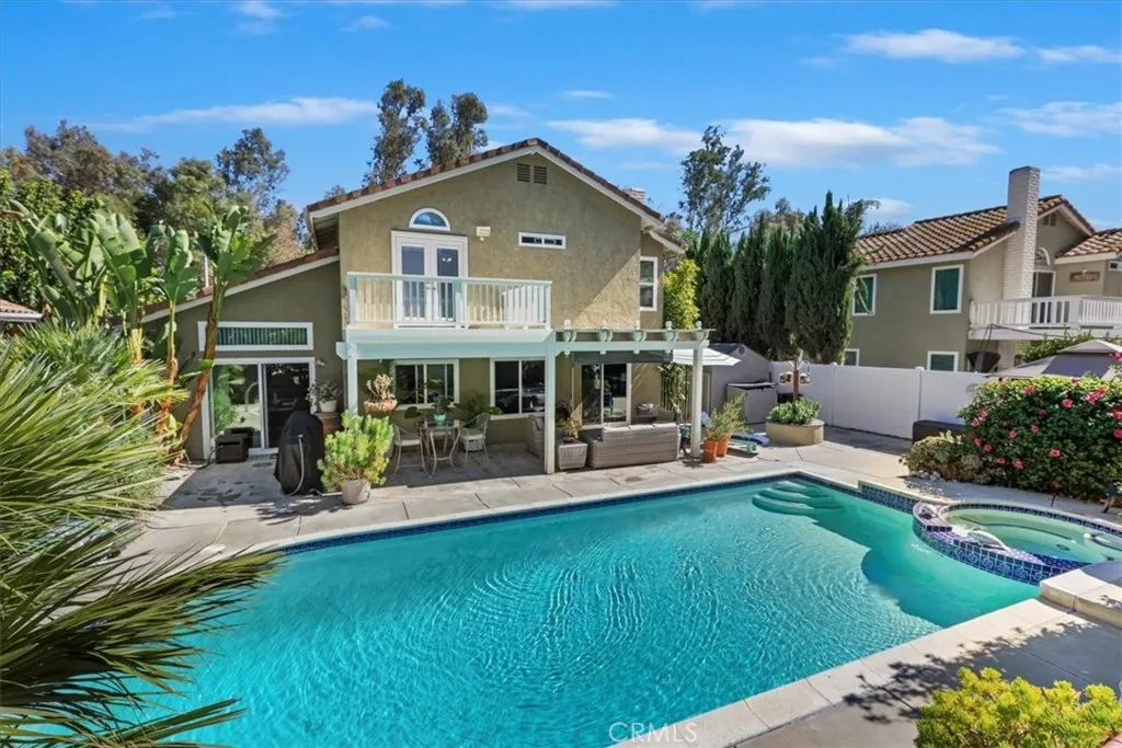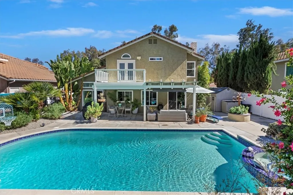 Welcome to this beautifully maintained home ideally situated on a quiet cul-de-sac in one of Murrieta’s most desirable neighborhoods. Set on a spacious 10,109 sq ft lot with no neighbors in front, the home enjoys peaceful views of the open land across the street—creating a wonderful sense of openness and privacy. Offering 4 bedrooms, 2.5 bathrooms, and a 3-car garage with a workshop area, attic storage, and included washer and dryer, this property combines comfort and function throughout. Step inside to a bright and inviting floorplan with high ceilings in the living room, creating an airy, open feel from the moment you enter. The family room features a beautiful stacked-stone fireplace, neutral finishes, and luxury plank vinyl flooring that flows throughout much of the home. The kitchen is open and cheerful with plenty of cabinet and counter space, stainless steel LG appliances—including the refrigerator—and clear views of the backyard. All plumbing and windows in the home have been replaced, adding value, comfort, and energy efficiency. Upstairs, one of the secondary bedrooms features French doors that open to a private balcony—perfect for a home office or a relaxing retreat. The spacious primary suite offers a walk-in closet, remodeled shower, and tasteful finishes, while the secondary bathroom has also been updated for a clean, modern look. Step outside to a backyard designed for relaxation and enjoyment. The sparkling custom pool and spa take center stage, surrounded by extensive hardscape, mature landscaping, and colorful plants that create a peaceful setting. There’s also a built-in firepit perfect for cozy evenings, newer fencing, a newer pool heater, Pentair pool equipment, and rain gutters. The large side yard offers valuable space for extra vehicles, a boat, or possibly a small RV, and raised planter beds provide the perfect place for growing your own vegetables. Large outdoor shed stay with the home, offering extra storage for tools or hobbies. Centrally located close to shops, restaurants, parks, and highly rated Murrieta schools, with easy access to both the 15 and 215 freeways, this home offers a rare blend of space, comfort, and location—all with very low taxes and no HOA. Inviting and well cared for, it’s the kind of home that simply feels good to come back to.