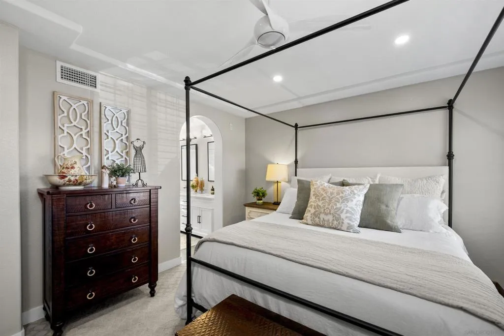 Luxury living in this rarely available, turn-key 3 bedroom3.5 bath end unit townhome in the heart of Liberty Station. This spacious home has been beautifully upgraded with vinyl wood plank flooring, Berber carpeting and shutters throughout. Gourmet Kitchen with Caesar stone Lyra countertops, custom kitchen cabinets, tiled backsplash, and GE Café series appliance package including Café refrigerator and 6-burner stove. Baths have newer cabinets, counter tops, mirrors and fixtures. Added bonus is the Halo home water purification system installed in 2024. Surrounded by trees, this home offers the utmost in privacy and green views. It’s just a short walk to restaurants, cafes, shopping including Trader Joe’s, the famed Liberty Public Market, movie theater, NTC Park spanning 46 acres on the waterfront, sporting club and the newly opened Cygnet theater. Minutes to downtown, airport, entertainment and all that San Diego has to offer.