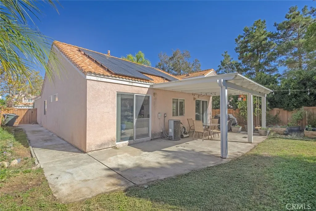 REDUCED PRICE!! Perfect starter home near the end of a cul-de-sac, centrally located in Paloma Del Sol. OWNED SOLAR! The end of this cul-de-sac provides direct access to the community walking path, which leads you to the pool, spa, sport courts and parks, all within a few minutes walk! This wonderful single story home is in great condition. It features two bedrooms plus an office (optional 3rd bedroom), 2 full baths, 2 car garage, covered rear patio and a PAID OFF SOLAR SYSTEM which will save you money on electric bills! Enter through the large open great room with high vaulted ceilings. Some of the features include a remodeled kitchen with quartz counters, remodeled main bathroom, gorgeous wood flooring and window blinds. The primary suite is spacious and has slider doors to the backyard. The kitchen window overlooks the beautiful, lush and private rear yard. Ready for all your entertaining, bbq’s and outdoor fun! This home is ready for new owners! The highly desirable Paloma Del Sol community amenities include: Pools / spas, parks, walking/hiking trails, tennis courts and basketball courts. Paloma Elementary School is located directly in the neighborhood. Quick access to schools, shops, restaurants and wine country. A great location in the wonderful city of Temecula! This won’t last!
