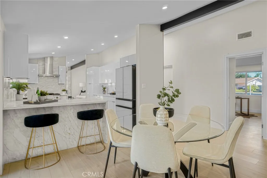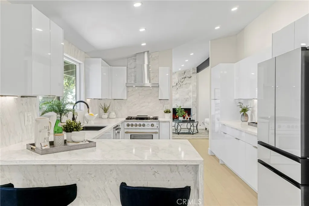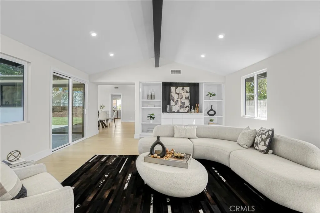 Modern Luxury Awaits – A Stunning Single-Story Transformation! Step inside this jaw-dropping 4-bedroom, 3-bath modern masterpiece—a home that has been completely reimagined from the ground up with high-end finishes, designer touches, and an effortless flow that defines contemporary living. From the moment you arrive, the grand double-door entry and open, sunlit floor plan will take your breath away. Natural light pours in through the skylight, highlighting the sleek new laminate floors, custom wood veneer accent panels with LED lighting, and a striking porcelain-tiled fireplace that sets the perfect tone for modern elegance. The state-of-the-art kitchen is pure perfection — featuring all-new cabinetry, quartz countertops with waterfalls, brand new modern appliances and a full designer backsplash that ties it all together. Whether you’re hosting a dinner party or enjoying a quiet breakfast, this kitchen is designed to impress.Every detail has been thoughtfully upgraded — from the brand-new roof and electrical panel to new energy-efficient windows, doors, and lighting throughout. The home’s spacious bedrooms offer plenty of storage, while the separate laundry room adds extra convenience.Step outside to your private backyard oasis, complete with new sprinklers, lush green grass, and a modern new gate. It’s the perfect space for entertaining, barbecues, or simply soaking up the sunshine.This isn’t just a remodel — it’s a complete reinvention of what modern living should be. Sleek. Stylish. Move-in ready.