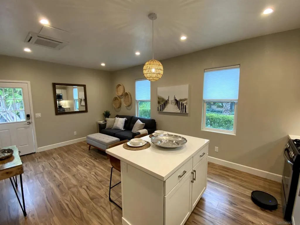 Escape to your own, private sanctuary in Carlsbad! This immaculate, furnished 1-bedroom home with a private, gated patio with seating and outdoor grill offers the perfect blend of modern luxury and serene coastal living. Forget crowded complexes; this is your exclusive haven, boasting a private entrance and ample street parking for your convenience. Step inside a light-filled great room, featuring a full-sized kitchen equipped with elegant GE Profile stainless steel appliances and crisp white quartz countertops, including a convenient island for dining. The inviting living area is designed for relaxation, with a streaming-ready smart TV, a comfortable sofa bed, and a stylish adamant. Indulge in the spa-like modern bathroom, featuring a huge walk-in shower with floor-to-ceiling tile, a sophisticated 42″ vanity, and an LED-lit mirror. The spacious Master Bedroom is a peaceful retreat, furnished with a queen-sized bedroom set, a plush hybrid mattress, a stacked GE washer/dryer closet, a closet with an organizer, and mirrored closet doors for added style and functionality. Enjoy independent living with your own HVAC split air unit, a separate tankless water heater, and dedicated Wi-Fi access. Your private patio includes a gas grill and outdoor dining. For added convenience and security, the home features USB outlets and keyless entry. Beyond your private oasis, you’ll discover a vibrant Carlsbad lifestyle right at your fingertips. Walk to the Dove Library, catch a movie at Cinepolis Cinemas, grab groceries at Vons Market, or savor delicious meals at local favorites.