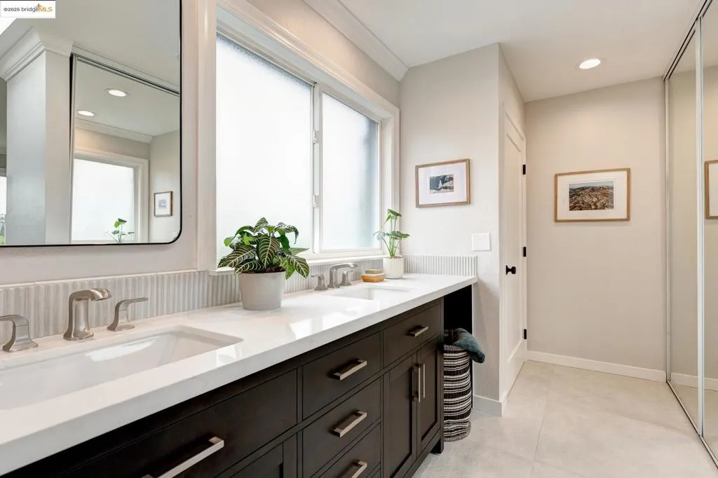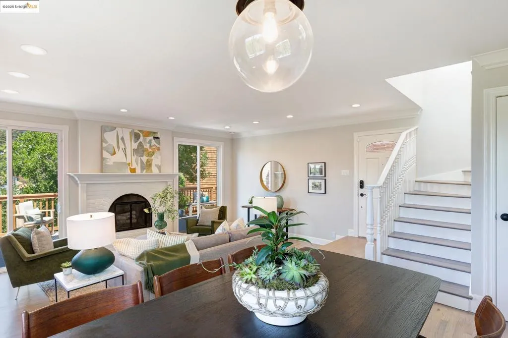 Turning onto Cavendish Lane, city life melts away on this idyllic cul-de-sac where you’ll enjoy all of Piedmont’s amenities including their top-rated schools. Set back from the street by a flowering walkway, the property feels instantly welcoming and private. Built in 1965, this beautifully updated, sun-washed home blends Traditional pedigree with modern aesthetics. The living room stuns with a central fireplace and two sets of glass doors inviting you onto the large deck for enviable indoor-outdoor living. Artfully refinished hardwood floors add timeless beauty throughout. The seamless connection between large public rooms and the updated chef’s kitchen, with French doors to a private patio, makes entertaining a breeze. Extra space off the kitchen offers versatility as a cozy hangout, home office, or kids’ corner for homework, while an updated half bath and convenient laundry complete the main floor. Upstairs, verdant views and natural light grace two bedrooms, a hall bath, and spacious primary suite. The primary bath features a large walk-in shower, a stylish mix of luxury tile, an extended double vanity, and abundant closet space. Close to Glenview shops & dining, Montclair Village and the Hampton Sports Field. Freeway access is nearby as well as the SF express bus stop.
