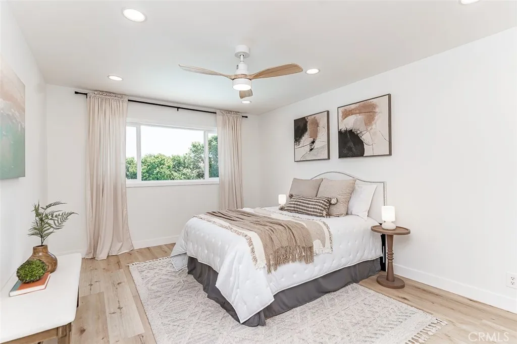 Step into modern comfort and timeless design at 1350 S Ashington Lane, Anaheim. This stunning 4-bedroom, 3-bath two-story home has been tastefully remodeled inside and out, offering a perfect blend of style and functionality in a peaceful, family-friendly neighborhood near Mojeska Park. Bright and airy with vaulted ceilings and an open floor plan, the home welcomes you with luxury vinyl plank flooring, recessed lighting, and designer finishes throughout. The chef’s kitchen features quartz countertops, soft-close custom cabinetry, a large island, and premium stainless-steel appliances. A cozy family room with a fireplace, built-in coffee bar, and wine refrigerator makes entertaining effortless. The main level includes a full bedroom and bath—ideal for guests or a home office. Upstairs, the spacious primary suite offers a walk-in closet and a beautifully updated en-suite bathroom with dual vanities and a custom shower. The backyard is a private retreat with a sparkling pool, spa, covered patio, and newly landscaped lawn. Additional highlights include dual-pane windows, a new HVAC system, and fresh interior and exterior paint. Washer, dryer, and all kitchen appliances are included. Move-in ready and close to top-rated schools, shops, and freeway access.