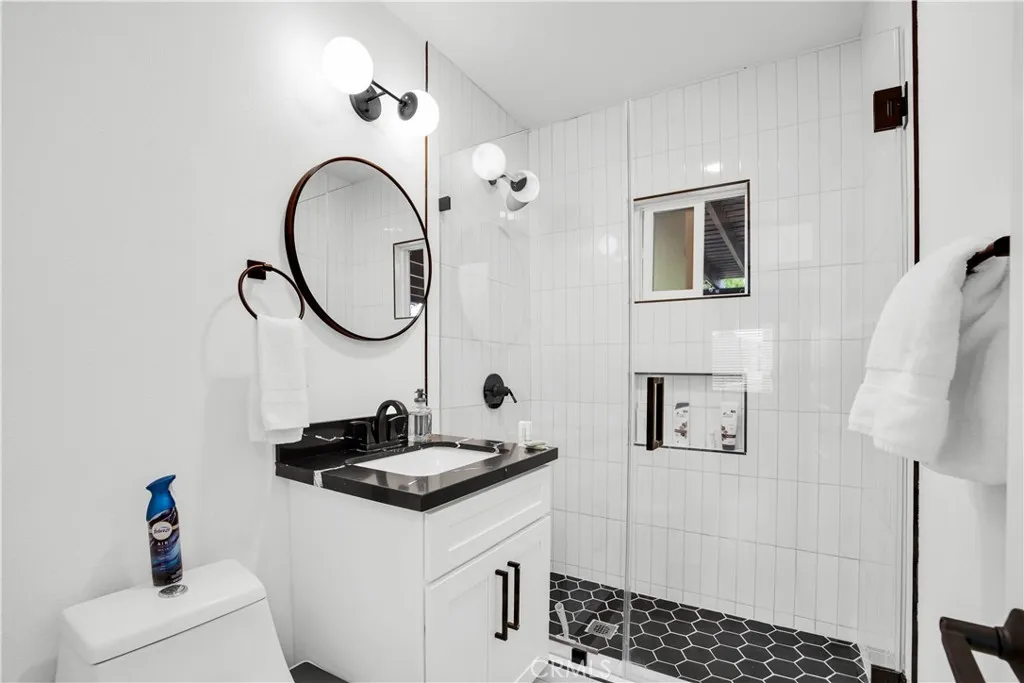 Both bathrooms have been thoughtfully updated with walk-in showers, chic laminate flooring, and newer vanities, offering a spa-like experience at home.