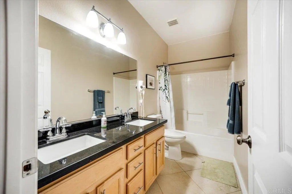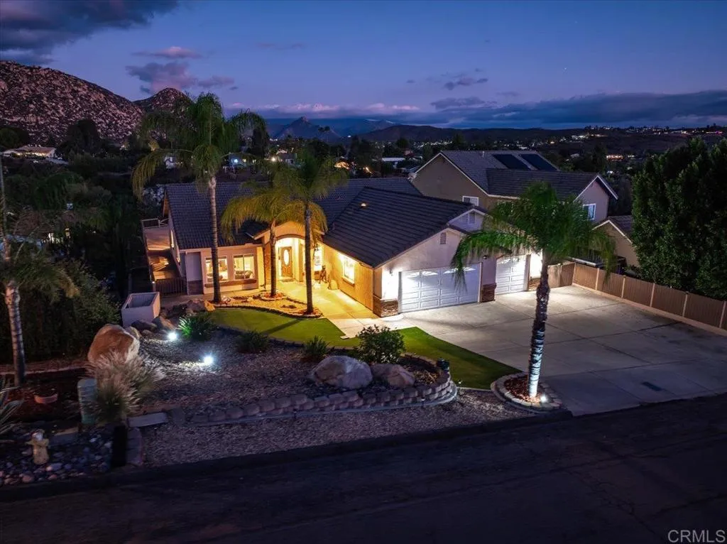 Beautiful and spacious single-level home on the canyon in San Diego Country Estates! Meticulously maintained and thoughtfully upgraded, this property offers serene mountain views, easy-care landscaping, and direct access to nature. Step inside to an open floor plan filled with natural light, vaulted ceilings, and gorgeous engineered wood flooring throughout the main living areas. The remodeled kitchen is a chef’s dream, featuring custom cabinetry, granite countertops, and high-end stainless steel appliances. Both bathrooms have been tastefully updated with newer vanities, granite counters, tile flooring, and modern fixtures. The living room showcases a stunning custom stone fireplace, creating a cozy yet elegant gathering space. Outside, you’ll find a massive 2,400 sq. ft. fire-resistant composite deck that wraps around the back of the home—ideal for entertaining, relaxing with morning coffee, or taking in breathtaking sunrise views. Enjoy afternoon shade on the deck while listening to the sounds of the seasonal creek that runs through the property. Additional highlights include a three-car garage with Tesla EV charger, recessed lighting and artificial turf in the front yard for effortless upkeep. A hiking trail at the edge of the property leads directly to the popular Mount Gower Open Space Preserve, perfect for outdoor enthusiasts. Enjoy the best of country living with all the comforts of a modern home and a low-maintenance lifestyle. San Diego Country Estates offers incredible amenities, including a community pool, golf course, pickleball and tennis courts, equestrian facilities, parks, and scenic trails. Conveniently located near local shops, restaurants, and schools—this home truly has it all!
