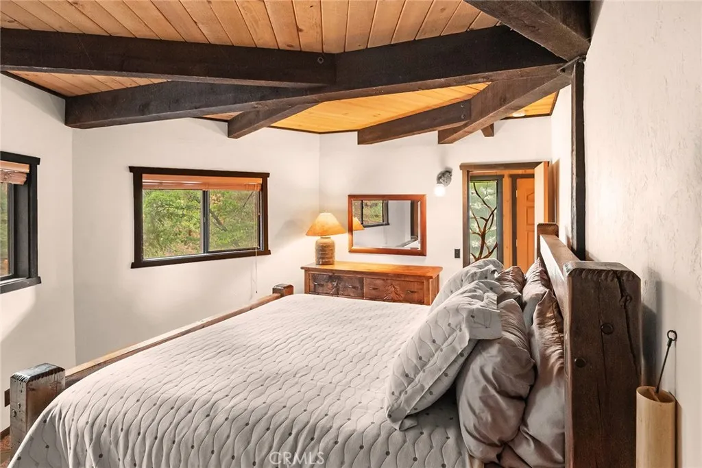 Nestled among the pines on a quiet Moonridge cul-de-sac, this inviting 2-bedroom, 2-bath mountain retreat blends warmth, charm, and architectural character. Open-beam ceilings and expansive windows fill the home with natural light and serene forest views.