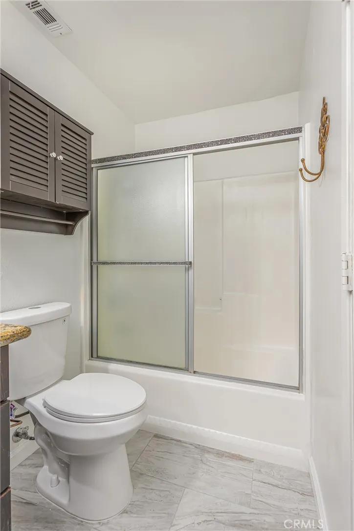 Recent upgrades include recessed lighting, neutral paint tones inside and out, and new laminate wood flooring throughout. Down the hall are three spacious bedrooms, each with laminate flooring and ceiling fans. The two secondary bedrooms share a full bath with a granite vanity with a decorative countertop sink, and shower/tub combo, while the primary suite offers its own ensuite bath with matching finishes.